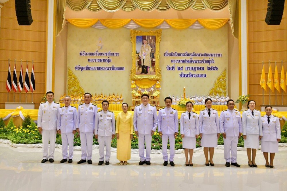 นางตะวัน ตังคโนภาส อัยการจังหวัดประจำสำนักงานอัยการสูงสุด สำนักงานคดีอาญาธนบุรี รักษาการในตำแหน่ง อัยการจังหวัดคดีเยาวชนและครอบครัวจังหวัดระนอง ร่วมพิธีถวายเครื่องราชสักการะและวางพานพุ่ม และพิธีจุดเทียนถวายพระพรชัยมงคล เนื่องในวันเฉลิมพระชนมพรรษา พระบาทสมเด็จพระเจ้าอยู่หัว ในวันศุกร์ที่ ๒๘ กรกฎาคม ๒๕๖๖ เวลา ๑๘.๐๐ น. ณ หอประชุมจังหวัดระนอง ศูนย์ราชการจังหวัดระนอง