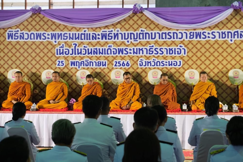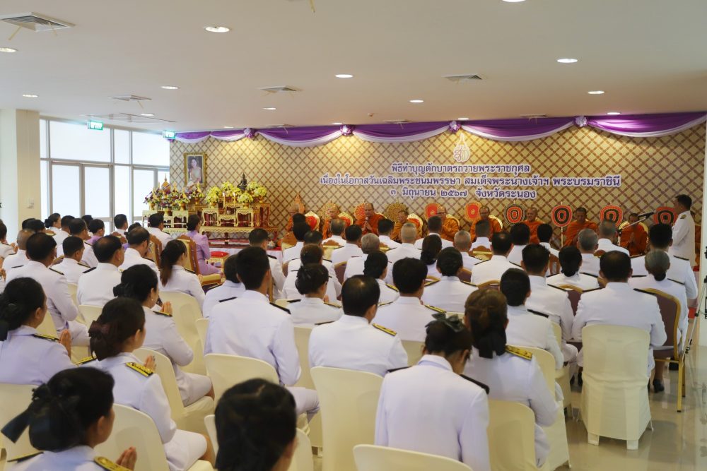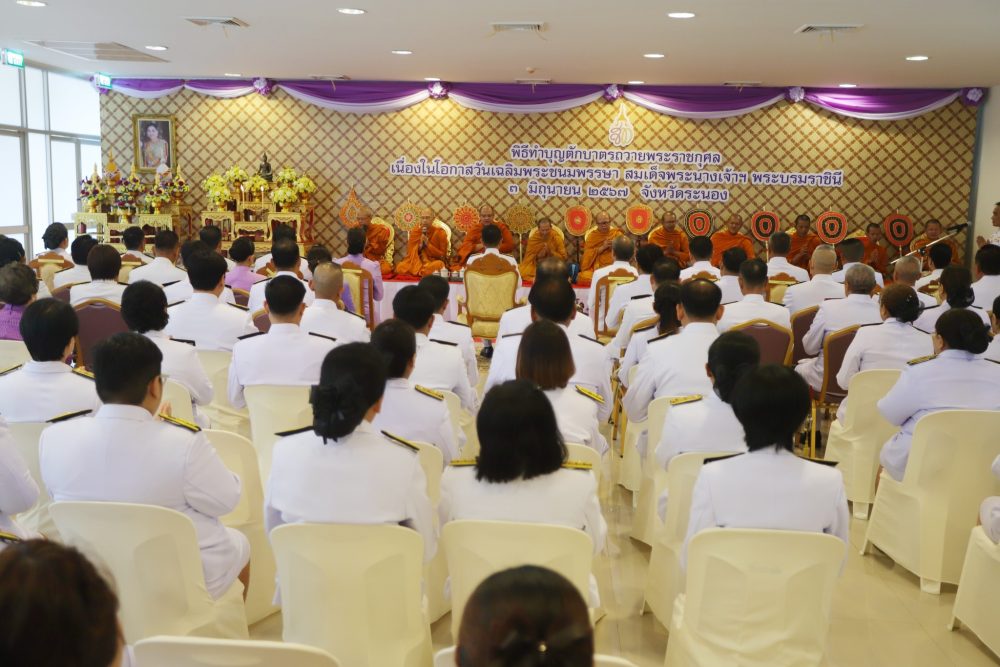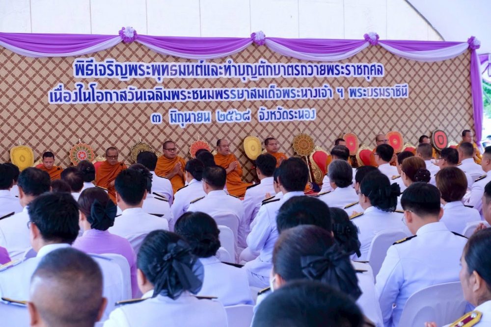 วันที่ ๓ มิถุนายน ๒๕๖๘ เวลา ๐๗.๓๐ น. นางภิญญดา เพชรทอง อัยการจังหวัดคดีเยาวชนและครอบครัวจังหวัดระนอง พร้อมด้วยข้าราชการธุรการ ร่วมพิธีเจริญพระพุทธมนต์ และทำบุญตักบาตรถวายเป็นพระราชกุศลสมเด็จพระนางเจ้าสุทิดา พัชรสุธาพิมลลักษณ พระบรมราชินี เนื่องในโอกาสวันเฉลิมพระชนมพรรษา ๓ มิถุนายน ๒๕๖๘ ณ ลานอเนกประสงค์หน้าเทศบาลเมืองระนอง อำเภอเมืองระนอง จังหวัดระนอง