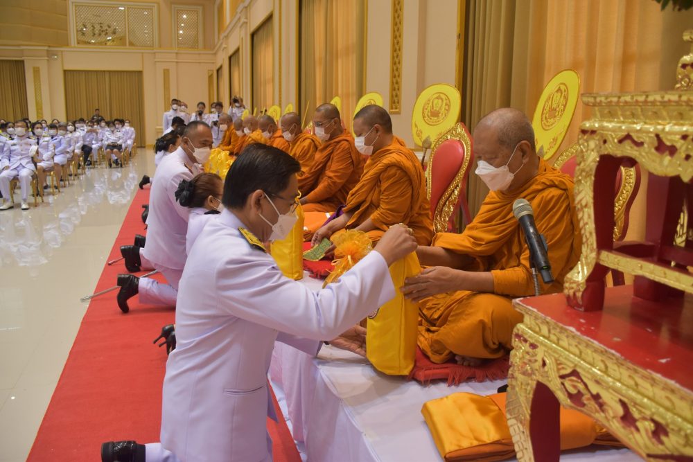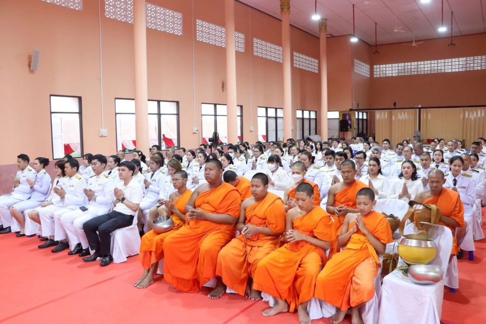 นางสาวณัฐวรินธร จิรโชติมุขสิริ อัยการประจำกอง สำนักงานอัยการคดีเยาวชนและครอบครัวจังหวัดระนอง พร้อมด้วยข้าราชการฝ่ายอัยการร่วมตักบาตร ตามโครงการบรรพชาอุปสมบท ๙๙ รูป ถวายพระพรชัยมงคลแด่สมเด็จพระเจ้าลูกเธอ เจ้าฟ้าพัชรกิติยาภาฯ ให้ทรงหายจากพระอาการประชวร ในวันอังคารที่ ๒๔ มกราคม ๒๕๖๖ เวลา ๐๗.๐๐ น. ณ บริเวณพระธรรมธาตุเจดีย์ศรีระนอง วัดสุวรรณคีรีวิหาร พระอารามหลวง จังหวัดระนอง