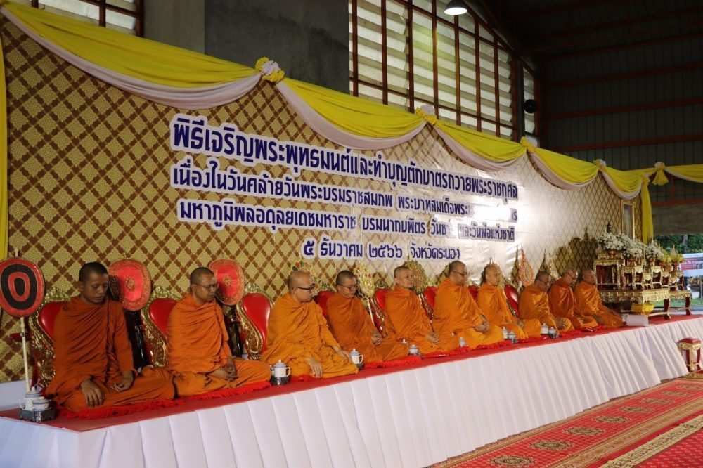 วันที่ 5 ธันวาคม 2568 เวลา 06.30 นาฬิกา นางสาวณัฐวรินธร จิรโชติมุขสิริ อัยการจังหวัดผู้ช่วย พร้อมด้วยข้าราชการฝ่ายอัยการ ร่วมพิธีเจริญพระพุทธมนต์และทำบุญตักบาตร เนื่องในวันคล้ายวันพระบรมราชสมภพพระบาทสมเด็จพระบรมชนกาธิเบศร มหาภูมิพลอดุลยเดชมหาราช บรมนารถบพิตร วันชาติและวันพ่อแห่งชาติ 5 ธันวาคม 2568 ณ ลานอเนกประสงค์หน้าเทศบาลเมืองระนอง อำเภอเมืองระนอง จังหวัดระนอง