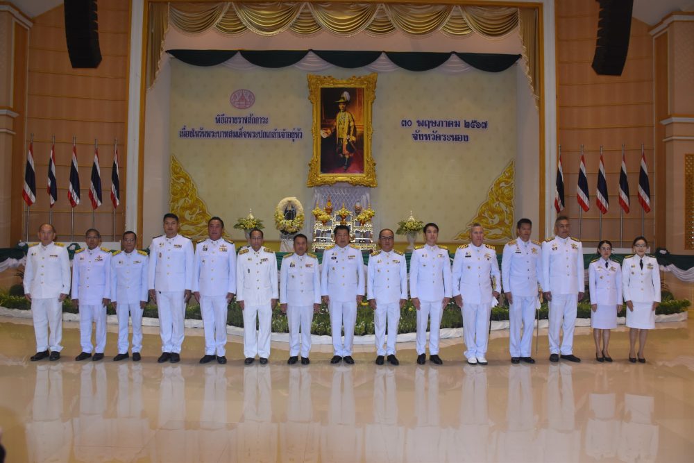 นายธนิต จตุรทิพประดับ อัยการจังหวัดประจำสำนักงานอัยการสูงสุด พร้อมด้วยข้าราชการฝ่ายอัยการ ร่วมพิธีเนื่องในวันคล้ายวันพระบรมราชสมภพพระบาทสมเด็จพระบรมชนกาธิเบศร มหาภูมิพลอดุลยเดชมหาราช บรมนาถบพิตร วันชาติ และวันพ่อแห่งชาติ ๕ ธันวาคม ๒๕๖๗ ในวันพฤหัสบดีที่ ๕ ธันวาคม ๒๕๖๗ เวลา ๐๗.๐๐ นาฬิกา ณ หอประชุมคอซู้เจียง ศูนย์ราชการจังหวัดระนอง