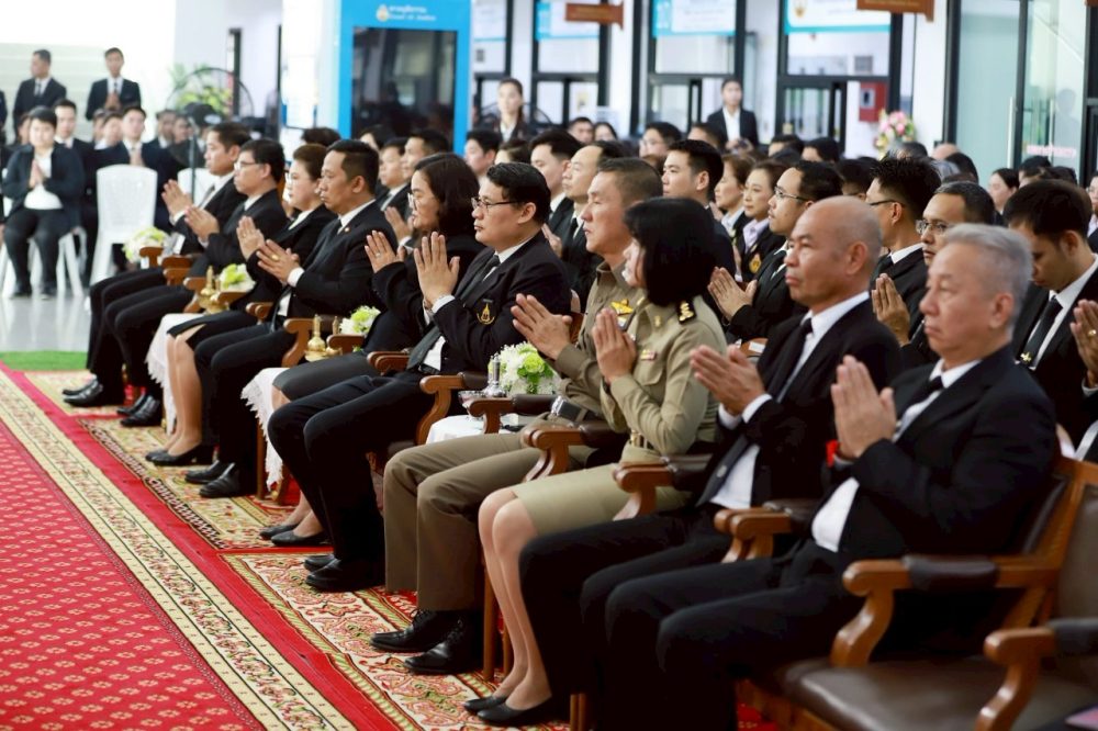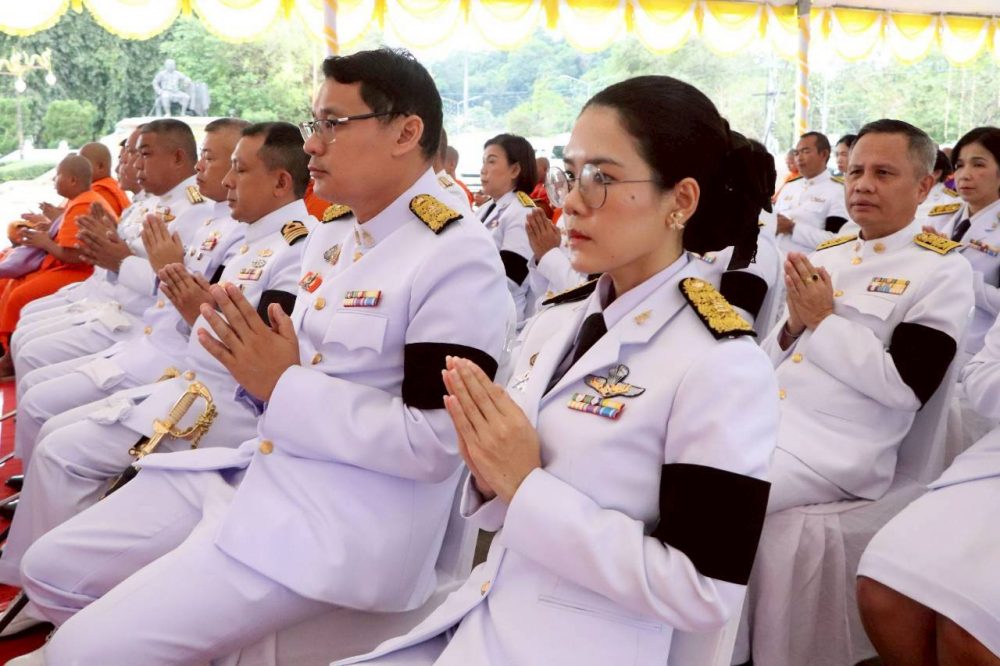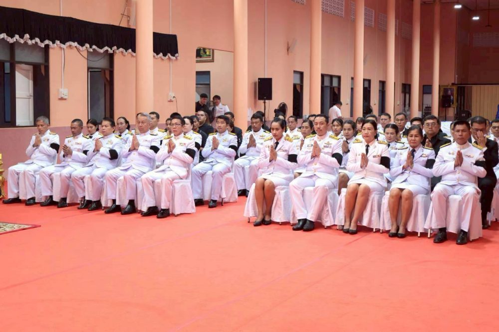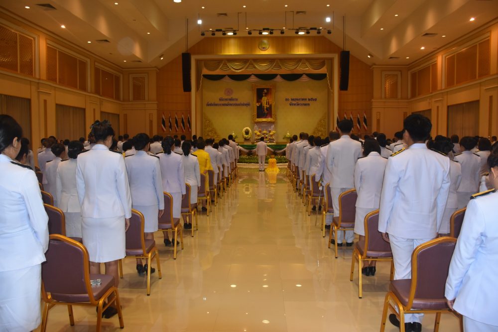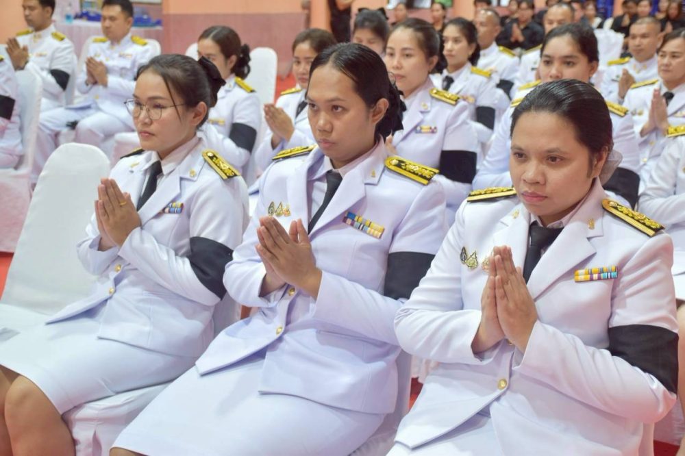 นางสาวณัฐวรินธร จิรโชติมุกสิริ อัยการจังหวัดผู้ช่วย พร้อมด้วยข้าราชการฝ่ายอัยการ ร่วมพิธีสวดพระพุทธมนต์และพิธีทำบุญตักบาตรถวายพระราชกุศล เนื่องในวันคล้ายวันสวรรคตพระบาทสมเด็จพระมงกุฏเกล้าเจ้าอยู่หัว สมเด็จพระมหาธีรราชเจ้า ในวันจันทร์ที่ ๒๕ พฤศจิกายน ๒๕๖๗ เวลา ๐๗.๐๐ น. ณ หอประชุมคอซู้เจียง ศูนย์ราชการจังหวัดระนอง