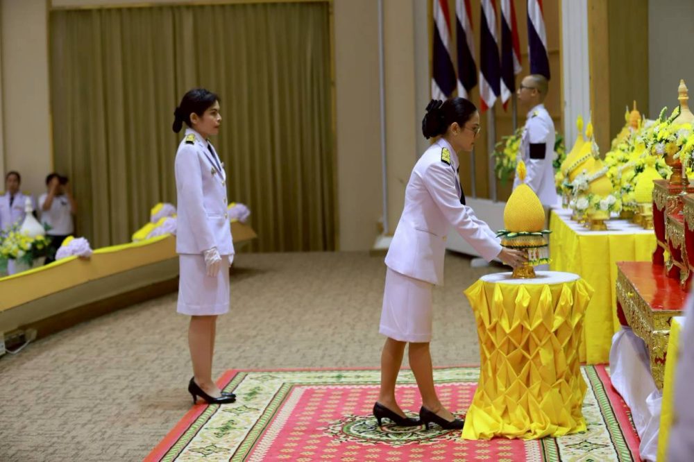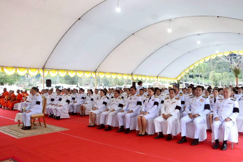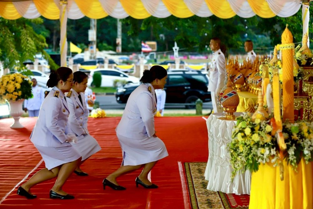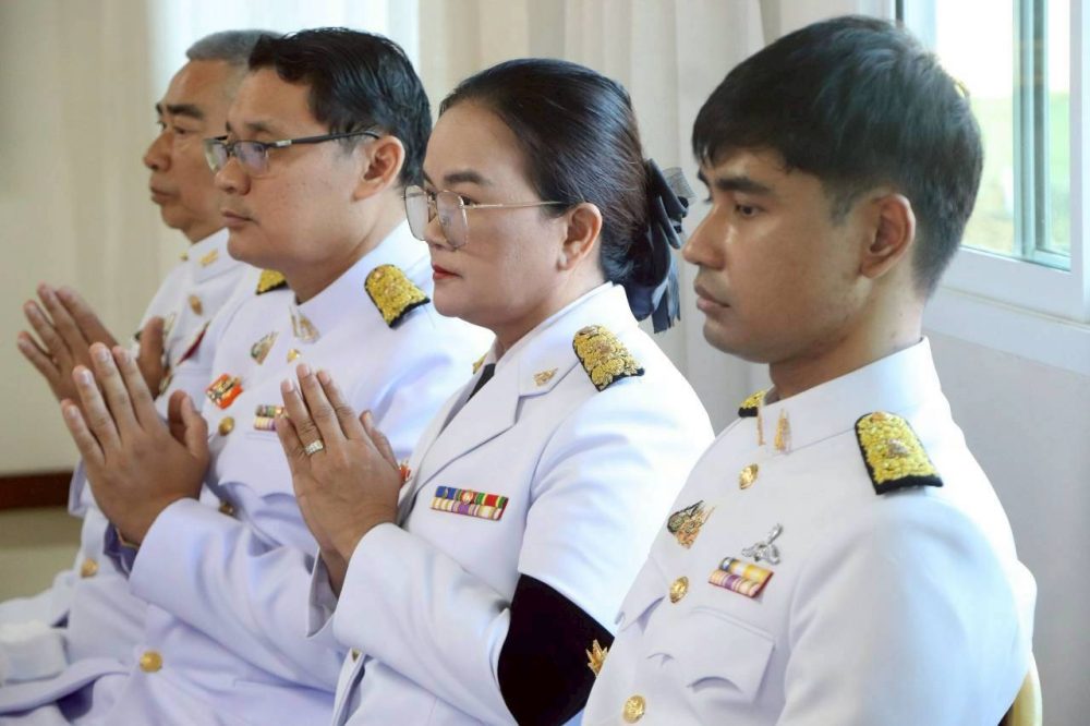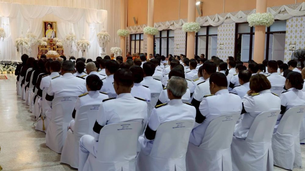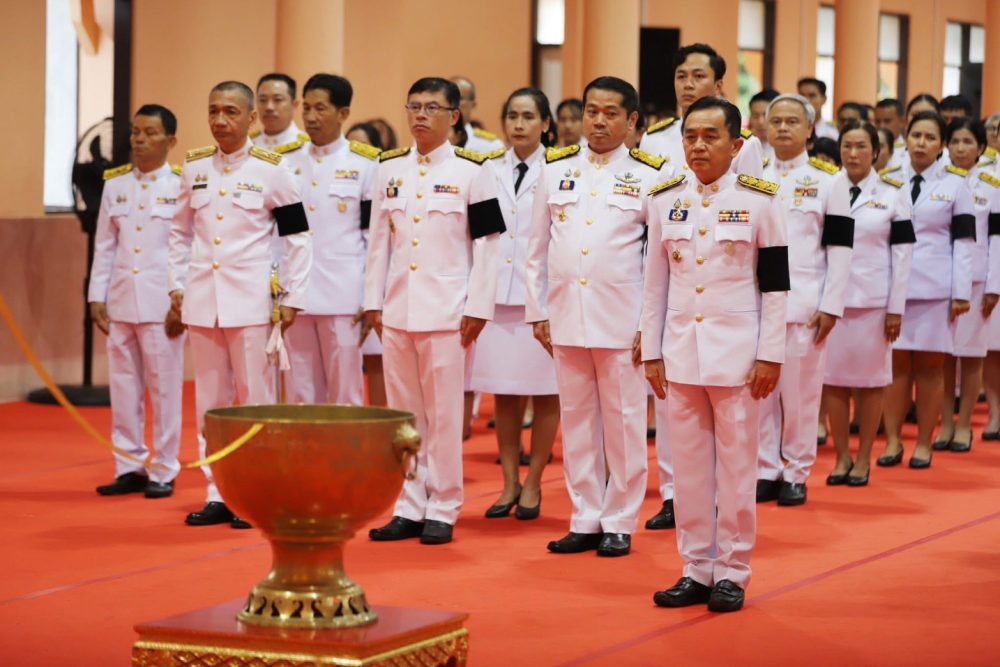 นางสาวณัฐวรินธร จิรโชติมุกสิริ อัยการจังหวัดผู้ช่วย พร้อมด้วยข้าราชการฝ่ายอัยการ ร่วมพิธีสวดพระพุทธมนต์และพิธีทำบุญตักบาตรถวายพระราชกุศล เนื่องในวันคล้ายวันสวรรคตพระบาทสมเด็จพระมงกุฏเกล้าเจ้าอยู่หัว สมเด็จพระมหาธีรราชเจ้า ในวันจันทร์ที่ ๒๕ พฤศจิกายน ๒๕๖๗ เวลา ๐๗.๐๐ น. ณ หอประชุมคอซู้เจียง ศูนย์ราชการจังหวัดระนอง
