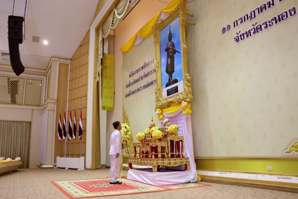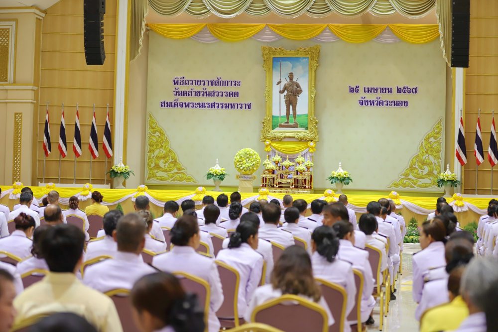 นายธนิต จตุรทิพประดับ อัยการจังหวัดประจำสำนักงานอัยการสูงสุด สำนักงานอัยการคดีเยาวชนและครอบครัวจังหวัดระนอง ร่วมพิธีถวายราชสดุดีแด่สมเด็จพระนเรศวร เนื่องในวันคล้ายวันสวรรคต ในวันพฤหัสบดีที่ ๒๕ เมษายน ๒๕๖๗ เวลา ๐๘.๐๐ น. ณ หอประชุมจังหวัดระนอง ศูนย์ราชการจังหวัดระนอง
