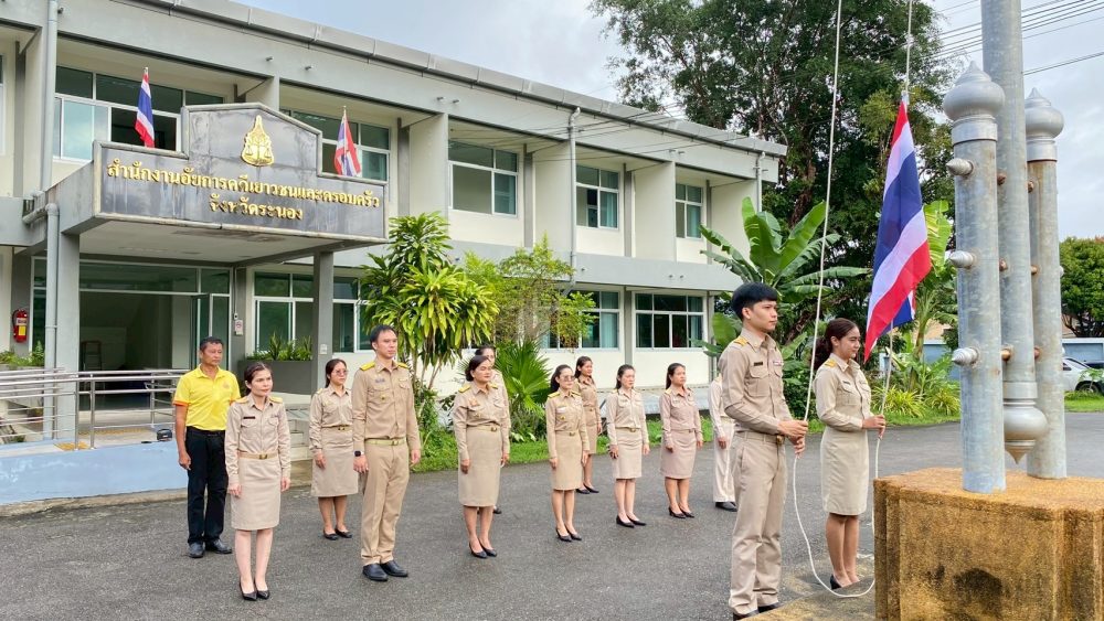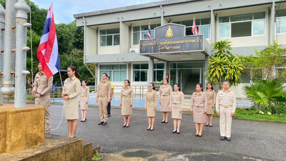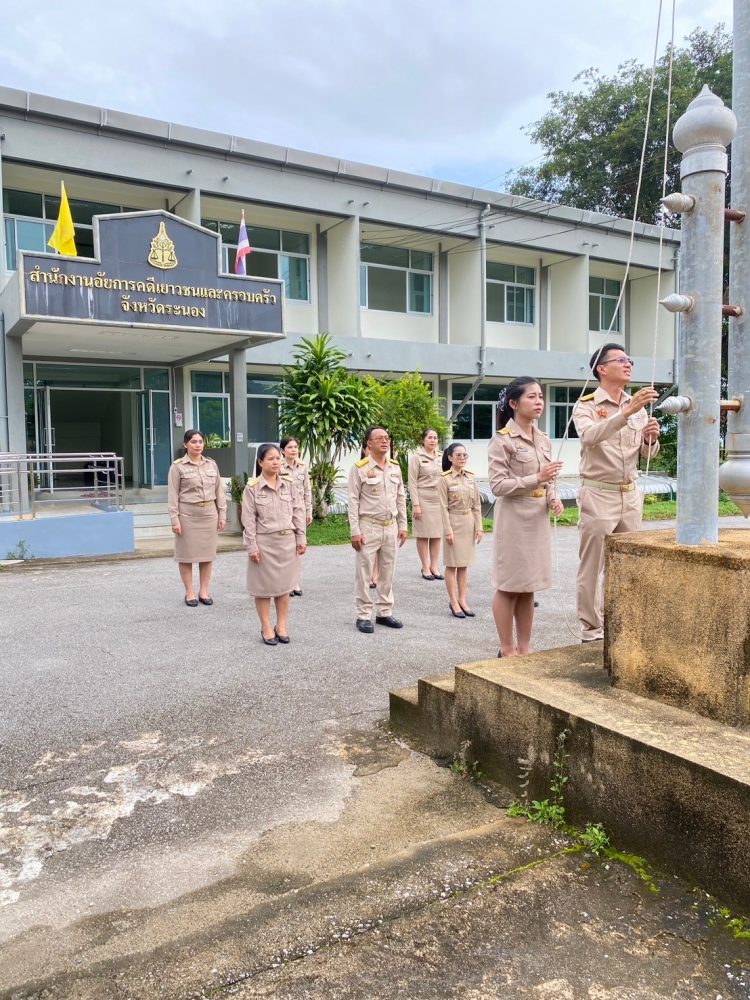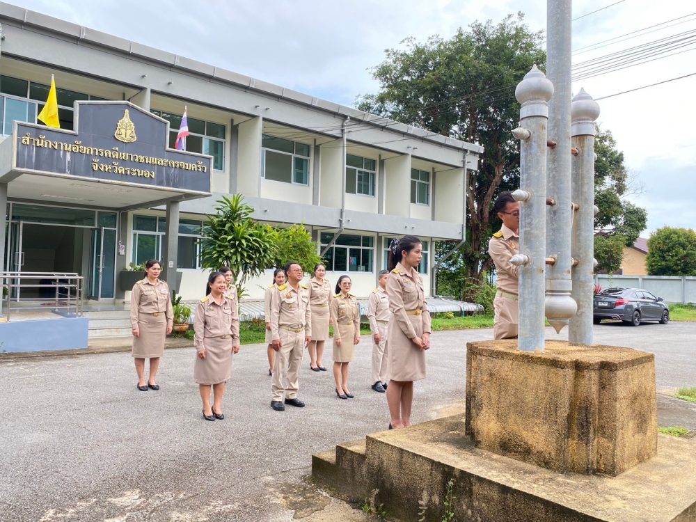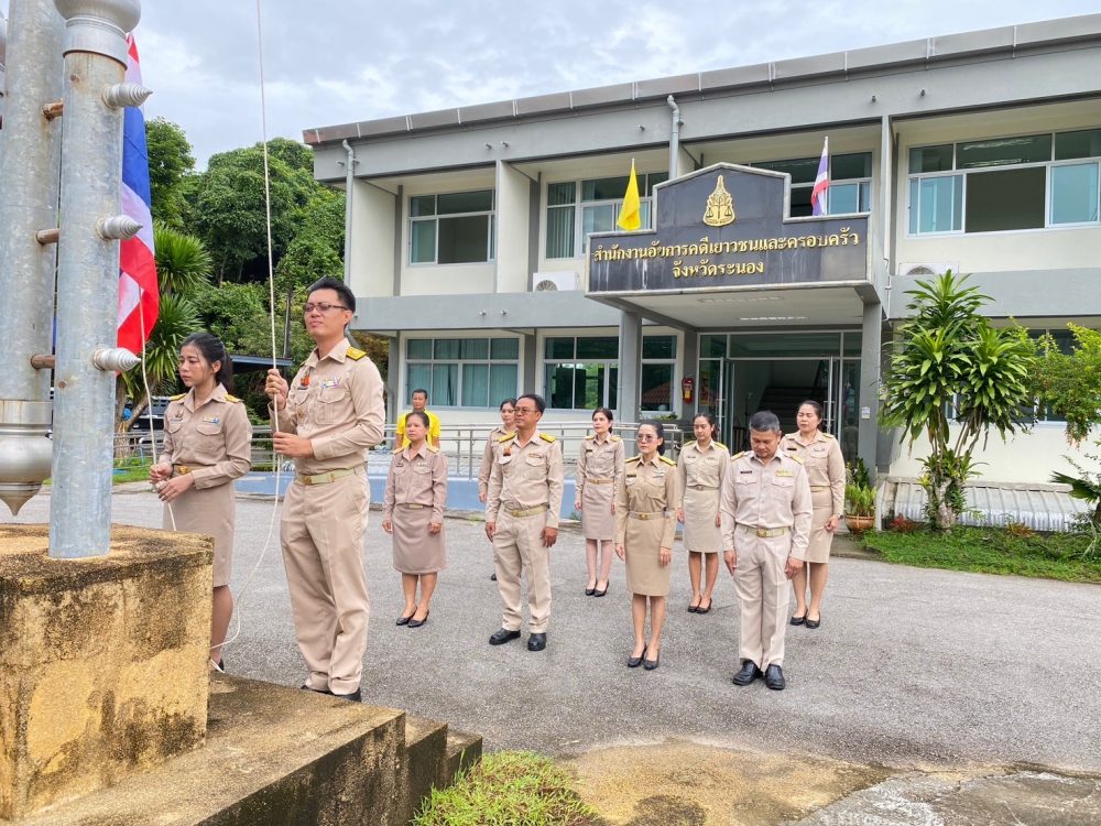 วันที่ 29 กันยายน 2568 เวลา 08.00 นาฬิกา นางภิญญดา เพชรทอง อัยการจังหวัดคดีเยาวชนและครอบครัวจังหวัดระนอง พร้อมด้วยข้าราชการฝ่ายอัยการ สำนักงานอัยการคุ้มครองสิทธิและช่วยเหลือทางกฎหมายและการบังคับคดีจังหวัดระนอง และสำนักงานคดีศาลสูงภาค 8 ส่วนสนับสนุนงานศาลสูงจังหวัดระนอง จัดกิจกรรมเคารพธงชาติและร้องเพลงชาติไทย เนื่องในวันพระราชทานธงชาติไทย 28 กันยายน (Thai National Flag Day) ประจำปี 2568 เพื่อเป็นการสร้างความภาคภูมิใจของคนในชาติ และเป็นการน้อมรำลึกในพระมหากรุณาธิคุณพระบาทสมเด็จพระมงกุฏเกล้าเจ้าอยู่หัวที่ทรงพระราชทานธงไตรรงค์เป็นธงชาติไทย ณ บริเวณเสาธงสำนักงานอัยการคดีเยาวชนและครอบครัวจังหวัดระนอง