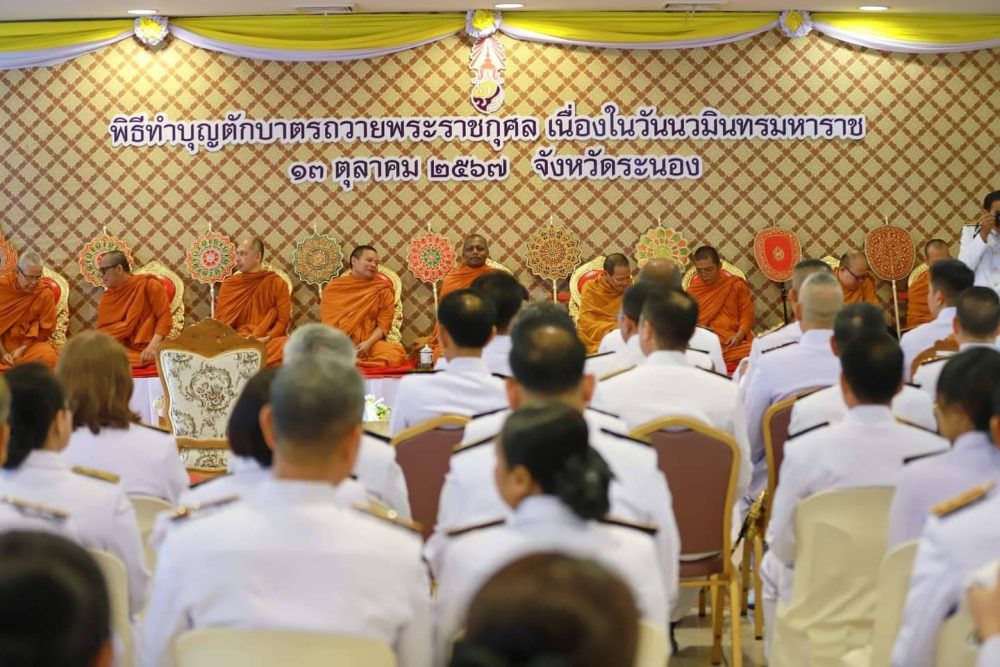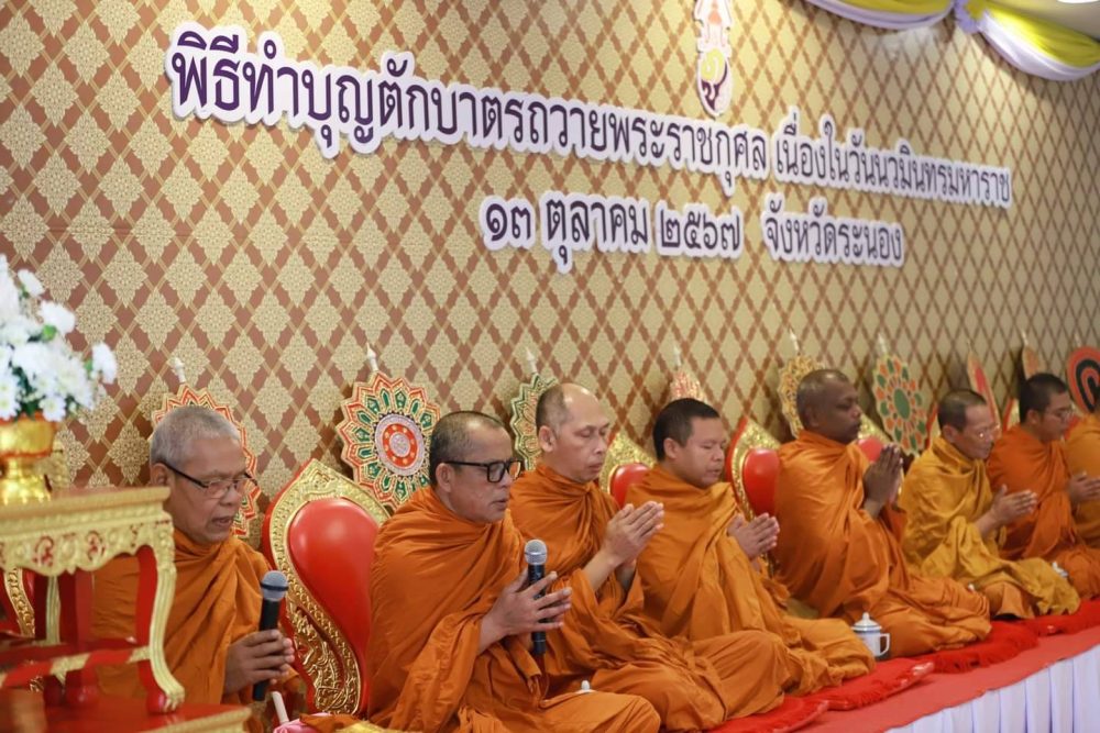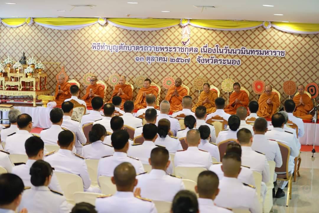 วันที่ 13 ตุลาคม 2567 เวลา 07.00 นาฬิกา ณ หอประชุมคอซู้เจียง ศาลากลางจังหวัดระนอง นายธนิต จตุรทิพประดับ อัยการจังหวัดประจำสำนักงานอัยการสูงสุด ร่วมทำบุญตักบาตรพระสงฆ์ จำนวน 89 รูป ถวายเป็นพระราชกุศล น้อมรำลึก เนื่องในวันนวมินทรมหาราช วันที่ 13 ตุลาคม วันคล้ายวันเสด็จสวรรคต พระบาทสมเด็จพระบรมชนกาธิเบศร มหาภูมิพลอดุลยเดชมหาราช บรมนาถบพิตร