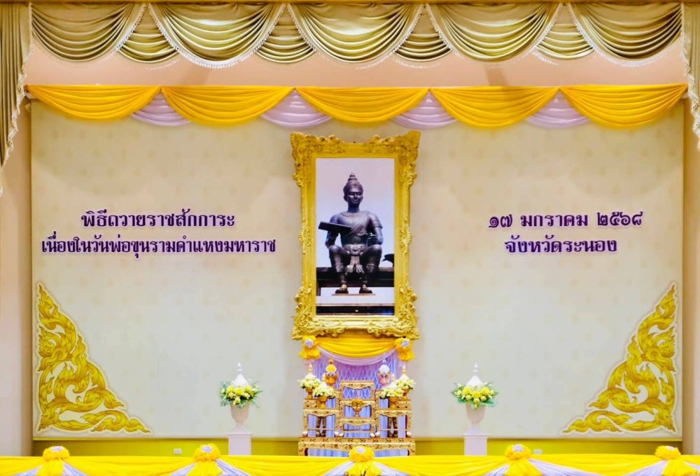 วันที่ 16 มกราคม 2569 เวลา 07.30 นาฬิกา นางสาวณัฐวรินธร จิรโชติมุขสิริ อัยการจังหวัดผู้ช่วย พร้อมด้วยข้าราชการฝ่ายอัยการ ร่วมพิธีเนื่องในวันพ่อขุนรามคำแหงมหาราช และเนื่องในวันยุทธหัตถีของสมเด็จพระนเรศวรมหาราช ณ อาคารคุณากรประชาสวรรค์(โรงเรียนพระปริยัติธรรมพุทธชยันตี) วัดสุวรรณคีรีวิหาร พระอารามหลวง อำเภอเมืองระนอง จังหวัดระนอง