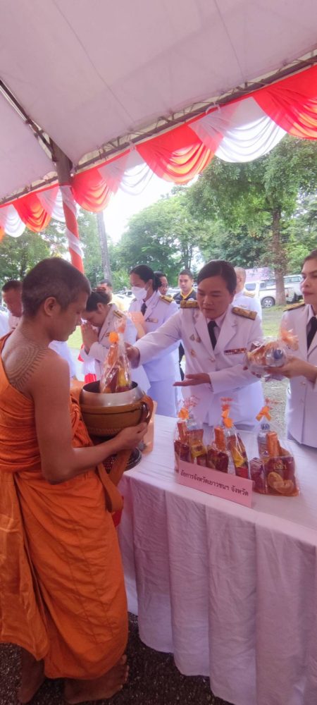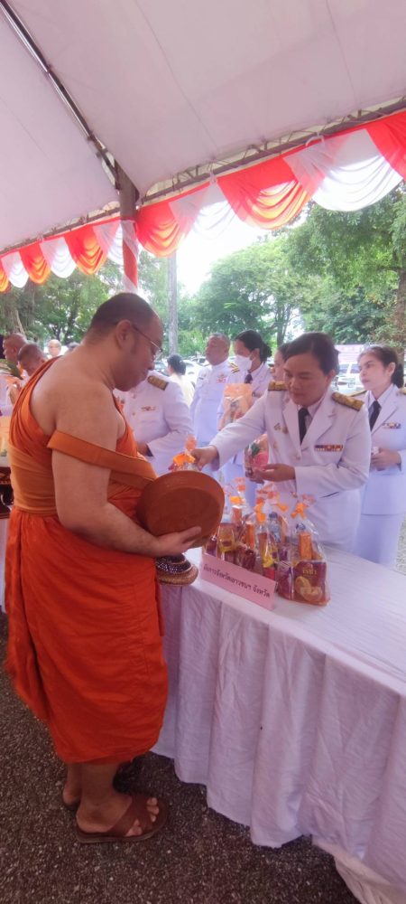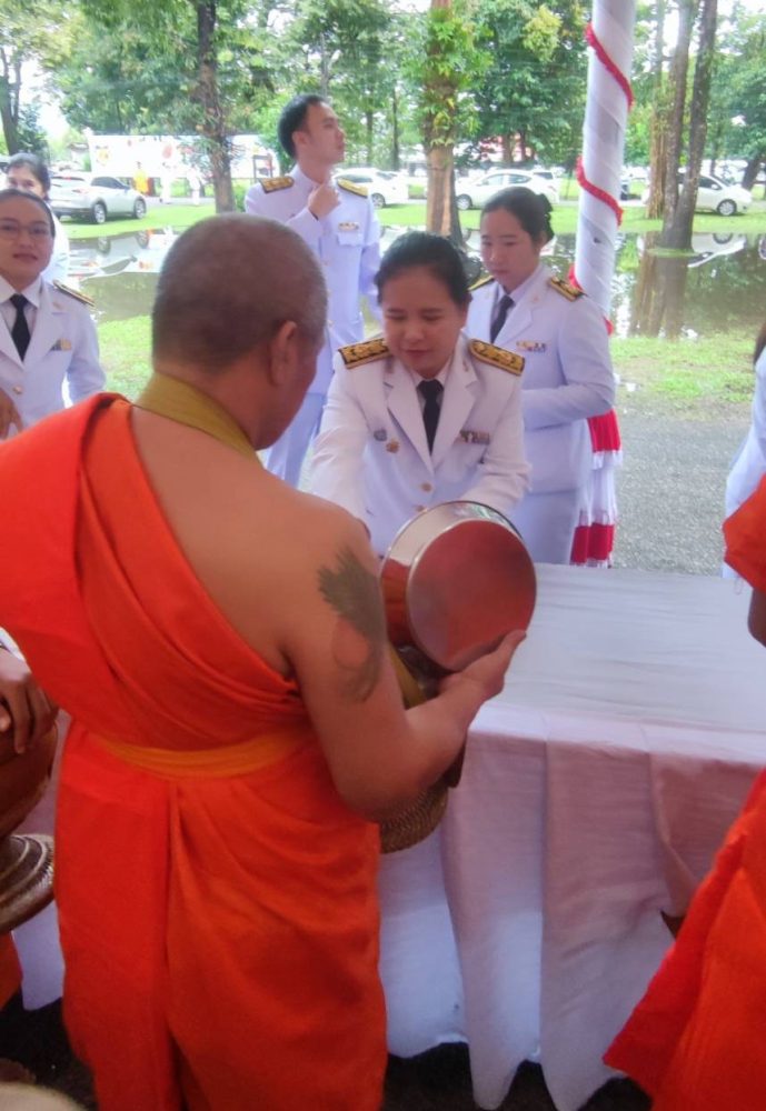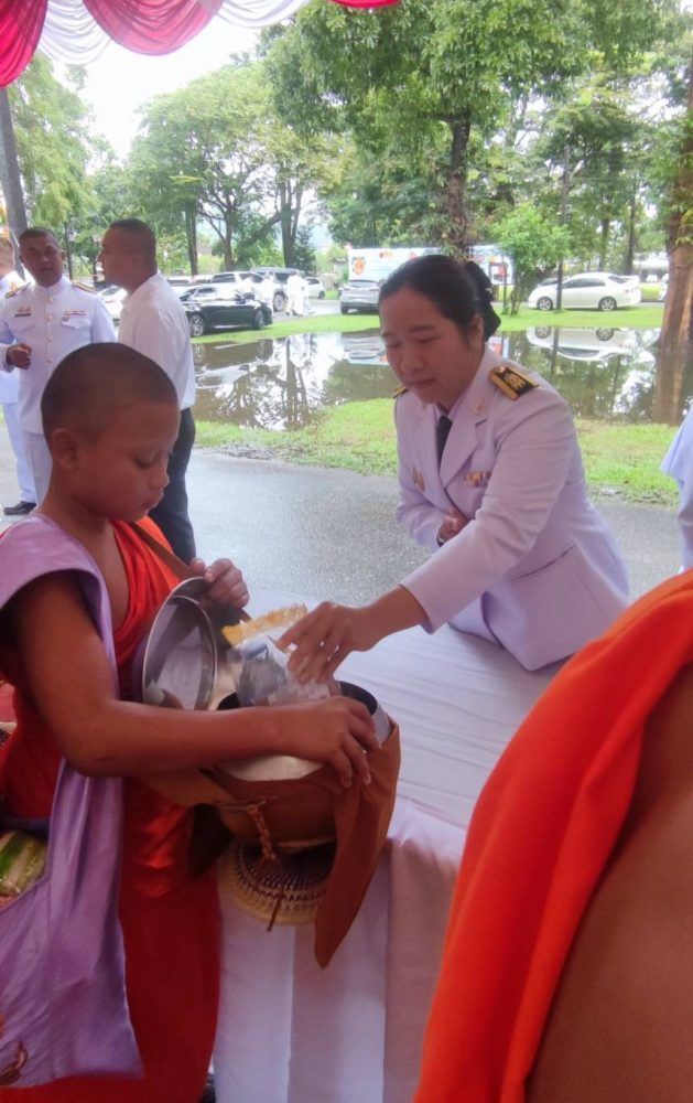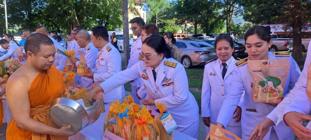 นางสาวณัฐวรินธร จิรโชติมุขสิริ อัยการประจำกอง สำนักงานอัยการคดีเยาวชนและครอบครัวจังหวัดระนอง พร้อมด้วยข้าราชการฝ่ายอัยการ ร่วมพิธีทำบุญตักบาตรถวายพระราชกุศล เนื่องในโอกาสวันมหามงคลเฉลิมพระชนมพรรษาสมเด็จพระนางเจ้าสิริกิติ์พระบรมราชินีนาถ พระบรมราชชนนีพันปีหลวง ๑๒ สิงหาคม ๒๕๖๖ (วันแม่แห่งชาติ) ในวันเสาร์ที่ ๑๒ สิงหาคม ๒๕๖๖ เวลา ๐๗.๐๐ น. ณ ลานอเนกประสงค์ เทศบาลเมืองระนอง