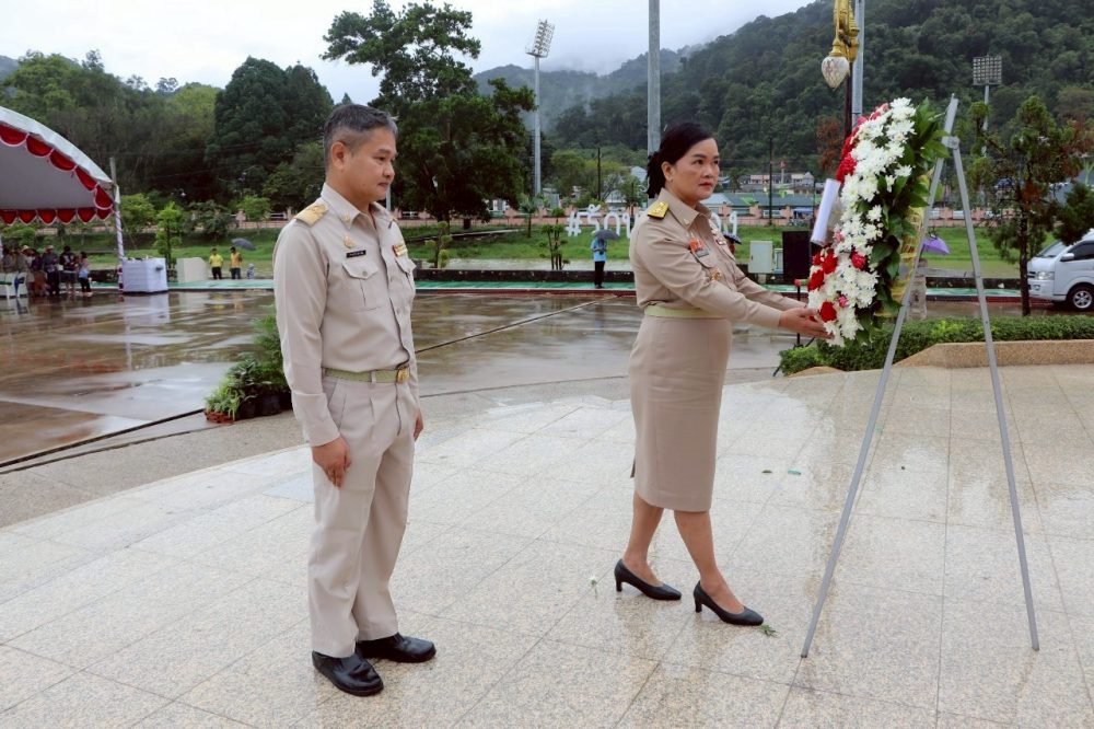 นางตะวัน ตังคโนภาส อัยการจังหวัดประจำสำนักงานอัยการสูงสุด สำนักงานคดีอาญาธนบุรี รักษาการในตำแหน่ง อัยการจังหวัดคดีเยาวชนและครอบครัวจังหวัดระนอง ร่วมพิธีถวายพานพุ่มดอกไม้เนื่องในวันคล้ายวันพระราขสมภพ พระบาทสมเด็จพระบรมชนกาธิเบศร มหาภูมิพลอดุลยเดชมหาราช บรมนาถบพิตร วันชาติ และ วันพ่อแห่งชาติ ๕ ธันวาคม ๒๕๖๖ ในวันอังคารที่ ๕ ธันวาคม ๒๕๖๖ เวลา ๐๘.๓๐ น. ณ หอประชุมศูนย์ราชการจังหวัดระนอง จังหวัดระนอง