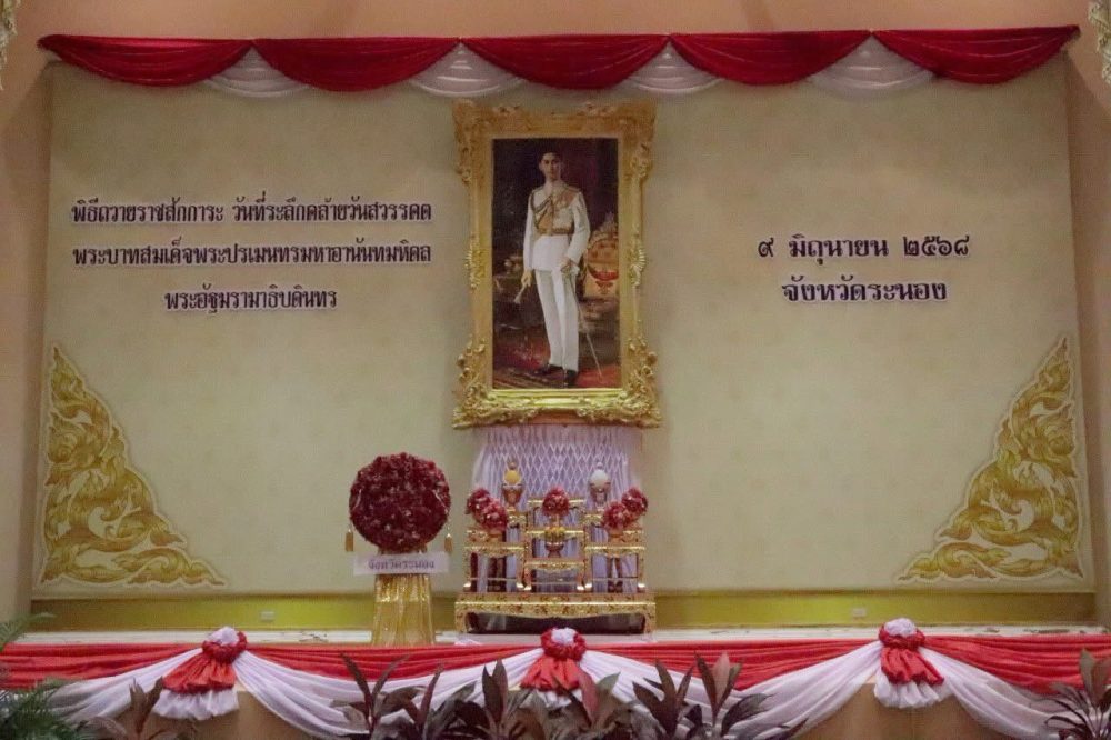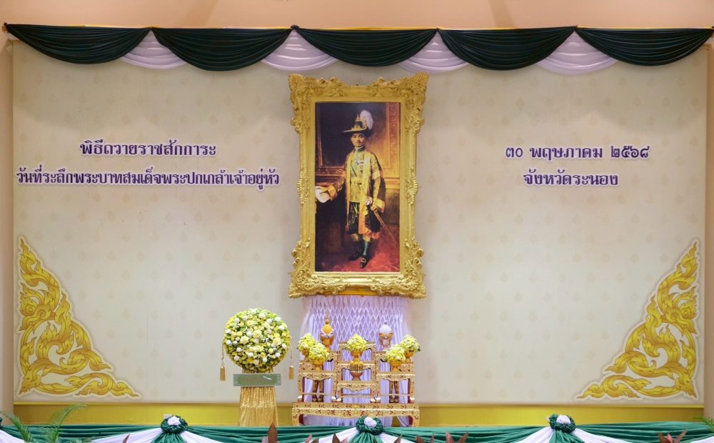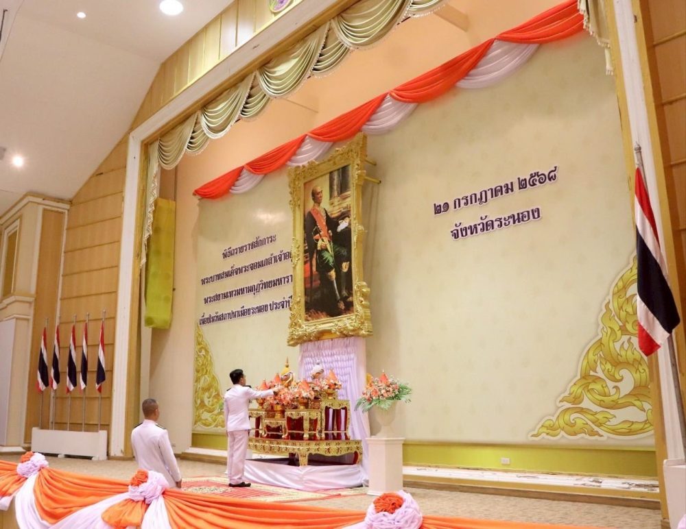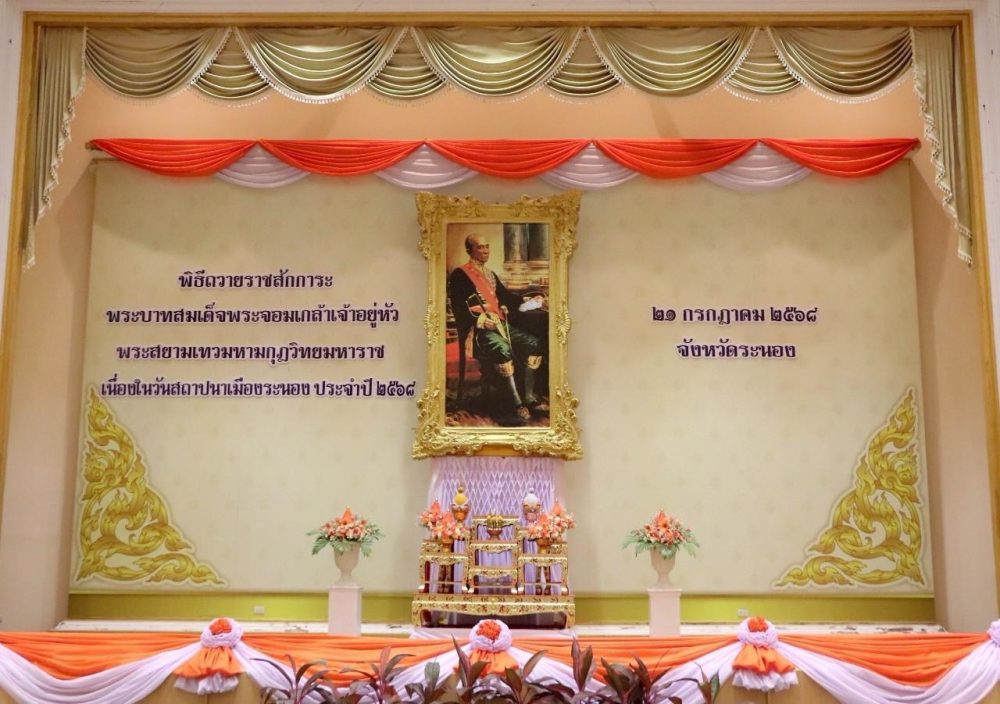 วันที่ 21 กรกฎาคม 2568 เวลา 08.30 น. นายพิรวุฒิ บำรุง อัยการจังหวัดประจำสำนักงานอัยการสูงสุด พร้อมด้วยข้าราชการฝ่ายอัยการ ร่วมพิธีถวายราชสักการะพระบาทสมเด็จพระจอมเกล้าเจ้าอยู่หัว เนื่องในวันสถาปนาเมืองระนอง ประจำปี 2568 ณ หอประชุมคอซู้เจียง ศูนย์ราชการจังหวัดระนอง อำเภอเมืองระนอง จังหวัดระนอง