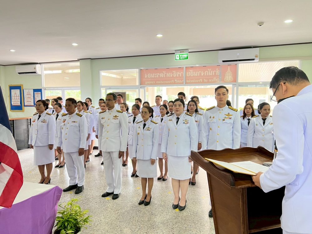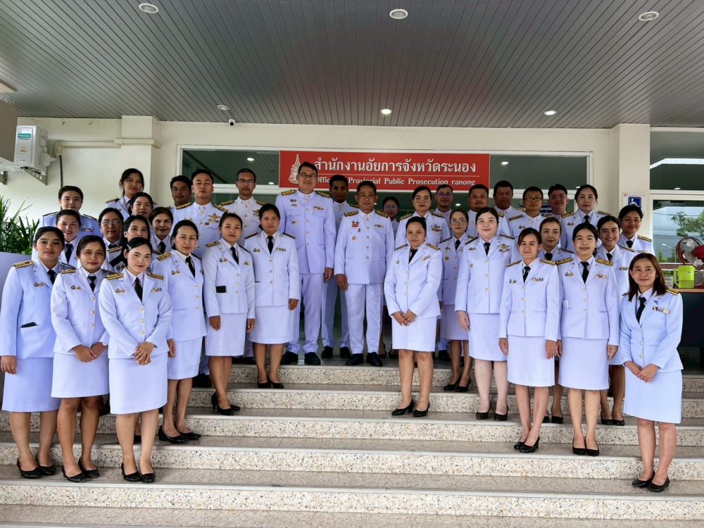 วันที่ ๒๕ กรกฎาคม ๒๕๖๘ เวลา ๑๐.๐๐ น. นางภิญญดา เพชรทอง อัยการจังหวัดคดีเยาวชนและครอบครัวจังหวัดระนอง พร้อมด้วยข้าราชการฝ่ายอัยการ สำนักงานอัยการในพื้นที่จังหวัดระนอง ร่วมพิธีถวายพระพรชัยมงคลและพิธีถวายสัตย์ปฏิญาณเพื่อเป็นข้าราชการที่ดีและพลังของแผ่นดิน เนื่องในโอกาสวันเฉลิมพระชนมพรรษา ๒๘ กรกฎาคม ๒๕๖๘ ณ อาคารสำนักงานอัยการจังหวัดระนอง