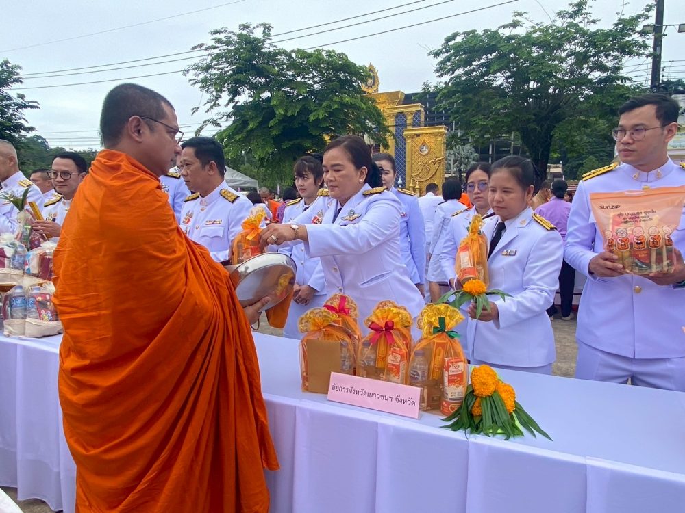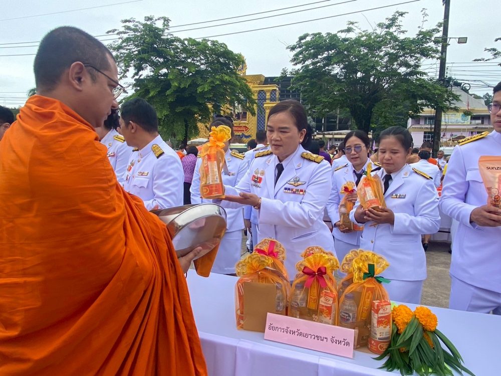 นายนิติศาสตร์ ทองจูด อัยการจังหวัดประจำสำนักงานอัยการสูงสุด สำนักงานอัยการคดีเยาวชนและครอบครัวจังหวัดระนอง พร้อมด้วยข้าราชการฝ่ายอัยการ ร่วมพิธีทำบุญตักบาตรถวายพระราชกุศล เนื่องในวันเฉลิมพระชนมพรรษา พระบาทสมเด็จพระเจ้าอยู่หัว วันศุกร์ที่ ๒๘ กรกฎาคม ๒๕๖๖ เวลา ๐๗.๐๐ น. ณ พระราชวังรัตนรังสรรค์ จังหวัดระนอง