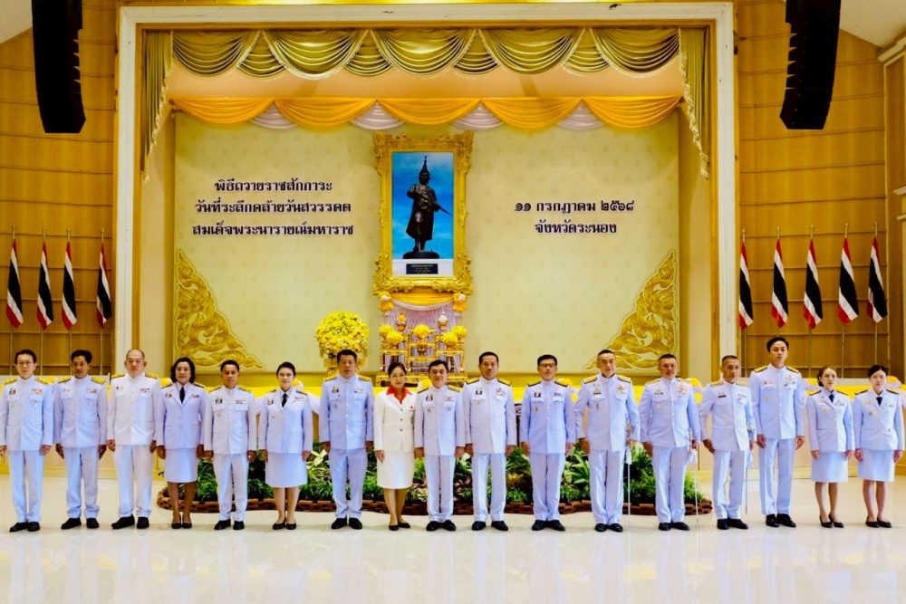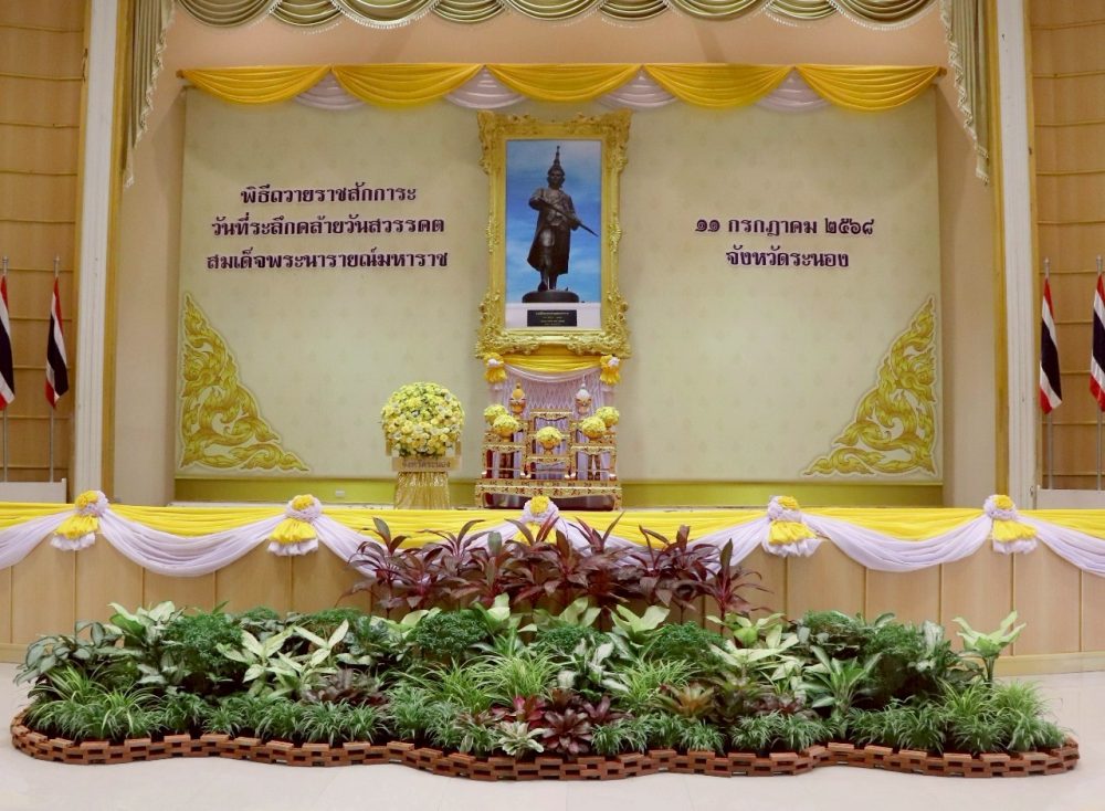 วันที่ ๑๑ กรกฎาคม ๒๕๖๘ เวลา ๐๘.๐๐ น. นางสาวณัฐวรินธร จิรโชติมุขสิริ อัยการจังหวัดผู้ช่วย พร้อมด้วยข้าราชการธุรการ ร่วมงานพิธีวันที่ระลึกวันคล้ายวันสวรรคตสมเด็จพระนารายณ์มหาราช ณ หอประชุมคอซู้เจียง ศูนย์ราชการจังหวัดระนอง ตำบลบางริ้น อำเภอเมืองระนอง จังหวัดระนอง
