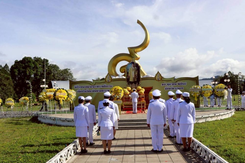 วันที่ 13 ตุลาคม 2568 เวลา 07.00 นาฬิกา นางภิญญดา เพชรทอง อัยการจังหวัดคดีเยาวชนและครอบครัวจังหวัดระนอง พร้อมด้วยข้าราชการฝ่ายอัยการ ร่วมพิธีทำบุตรตักบาตรถวายพระราชกุศลและพิธีวางพวงมาลาถวายราชสักการะ เนื่องในวันนวมินทรมหาราช เพื่อเป็นการน้อมรำลึกในพระมหากรุณาธิคุณของพระบาทสมเด็จพระบรมชนกาธิเบศร มหาภูมิพลอดุลยเดชมหาราช บรมนาถบพิตร ณ บริเวณลานพระเมรุมาศจำลองภายในสนามกีฬาจังหวัดระนอง (ลาน ร.9) อำเภอเมืองระนอง จังหวัดระนอง