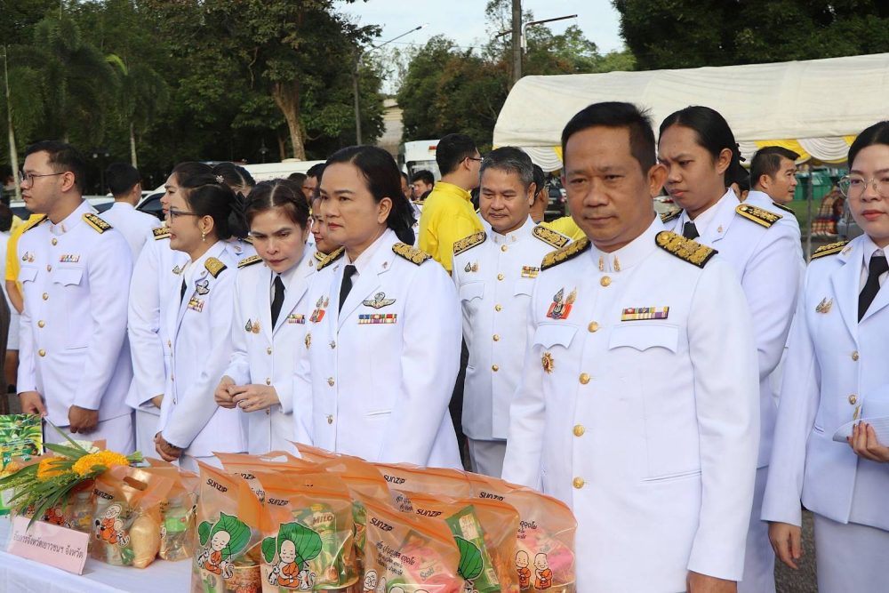 นางตะวัน ตังคโนภาส อัยการจังหวัดประจำสำนักงานอัยการสูงสุด สำนักงานคดีอาญาธนบุรี รักษาการในตำแหน่ง อัยการจังหวัดคดีเยาวชนและครอบครัวจังหวัดระนอง พร้อมด้วยข้าราชการฝ่ายอัยการ ร่วมตักบาตรถวายเป็นพระราชกุศล น้อมรำลึกวันนวมินทรมหาราช ในวันศุกร์ที่ ๑๓ ตุลาคม ๒๕๖๖ เวลา ๐๗.๐๐ น. ณ อาคารเฉลิมพระเกียรติ ๘๐ พรรษา องค์การบริหารส่วนจังหวัดระนอง