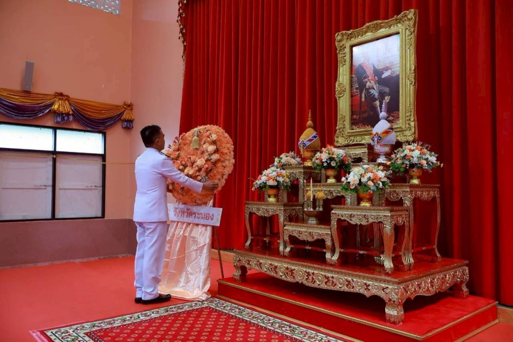 วันพุธที่ 23 ตุลาคม 2567 เวลา 08.00 นาฬิกา นางสาวณัฐวรินธร จิรโชติมุขสิริ อัยการจังหวัดผู้ช่วย เป็นตัวแทนสำนักงานอัยการคดีเยาวชนและครอบครัวจังหวัดระนอง และข้าราชการฝ่ายอัยการร่วมวางพวงมาลาถวายบังคมพระบรมราชานุสาวรีย์ พระบาทสมเด็จพระจุลจอมเกล้าเจ้าอยู่หัว เนื่องในวันคล้ายวันสวรรคตและวันปิยมหาราช ประจำปี 2567 เพื่อแสดงความจงรักภักดีและน้อมรำลึกในพระมหากรุณาธิคุณที่ทรงมีต่อปวงชนชาวไทย ณ บริเวณลานพระบรมราชานุสาวรีย์พระบาทสมเด็จพระ