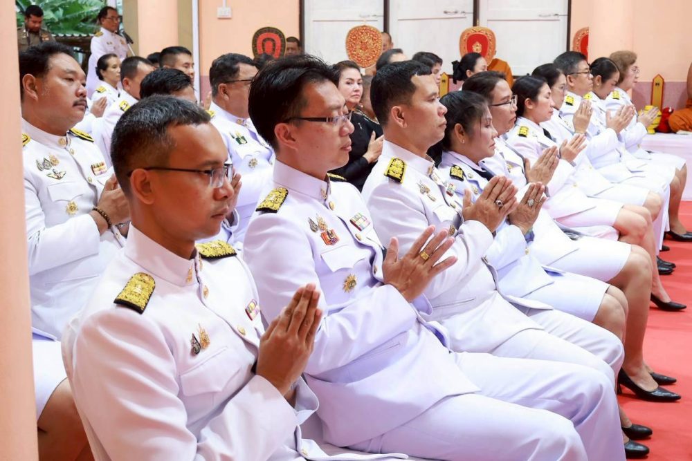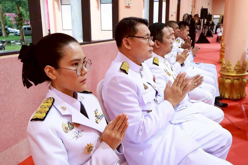 วันที่ 28 สิงหาคม 2568 เวลา 16.00 นาฬิกา นางสาวณัฐวรินธร จิรโชติมุขสิริ อัยการจังหวัดผู้ช่วย พร้อมด้วยข้าราชการฝ่ายอัยการ ร่วมพิธีเจริญพระพุทธมนต์เฉลิมพระเกียรติ ถวายพระพรชัยมงคล แด่พระบาทสมเด็จพระเจ้าอยู่หัว และพระบรมวงศานุวงศ์ ประจำปีพุทธศักราช 2568 ณ ศาลาการเปรียญพระวิสุทธิธรรมคณี วัดสุวรรณคีรีวิหาร พระอารามหลวง ตำบลเขานิเวศน์ อำเภอเมืองระนอง จังหวัดระนอง