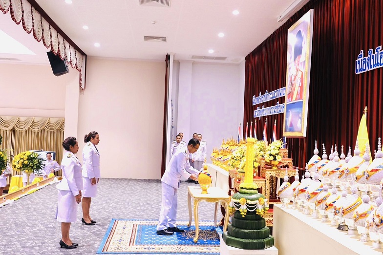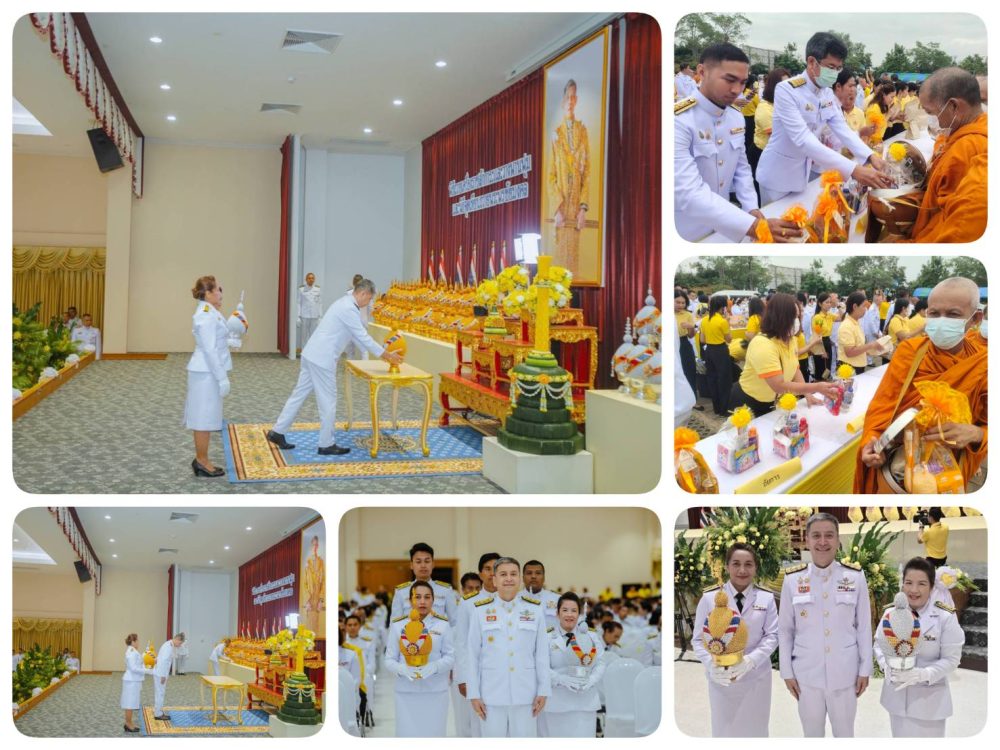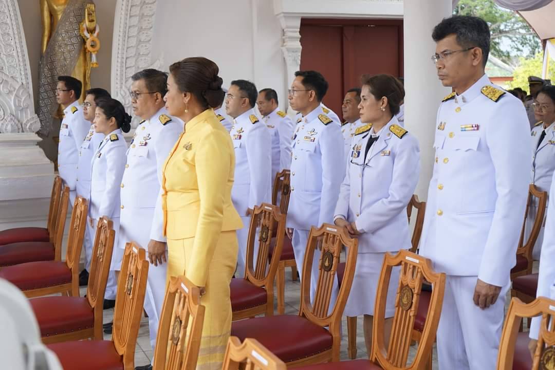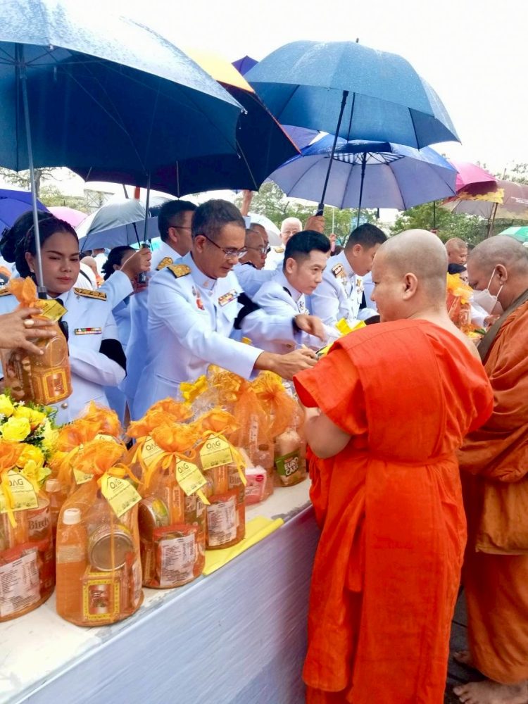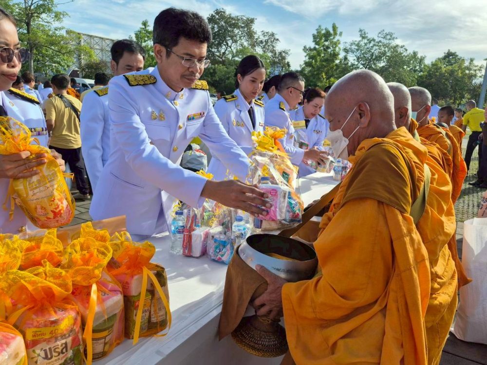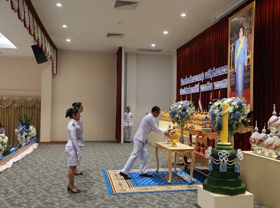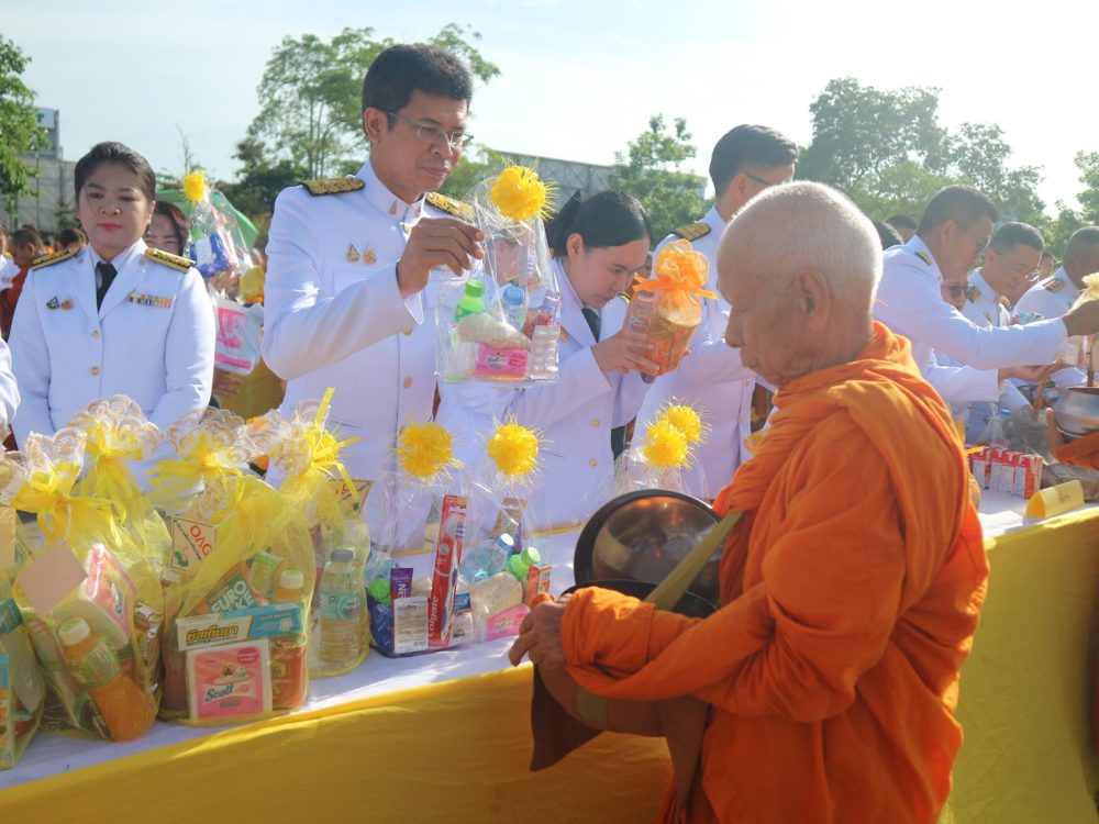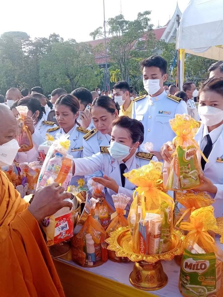 เวลา 07.30 นาฬิกา พิธีเจริญพระพุทธมนต์ และทำบุญตักบาตรถวายพระราชกุศล ณ บริเวณสนามหน้าศาลากลางจังหวัดสุราษฎร์ธานี อำเภอเมืองสุราษฎร์ธานี จังหวัดสุราษฎร์ธานี