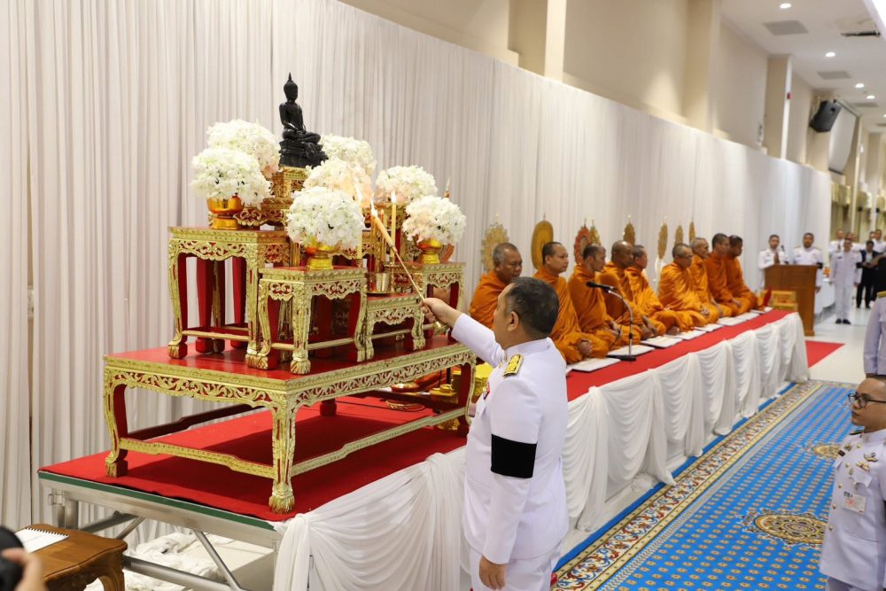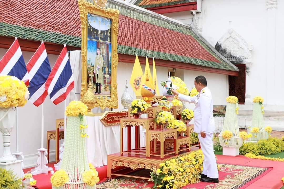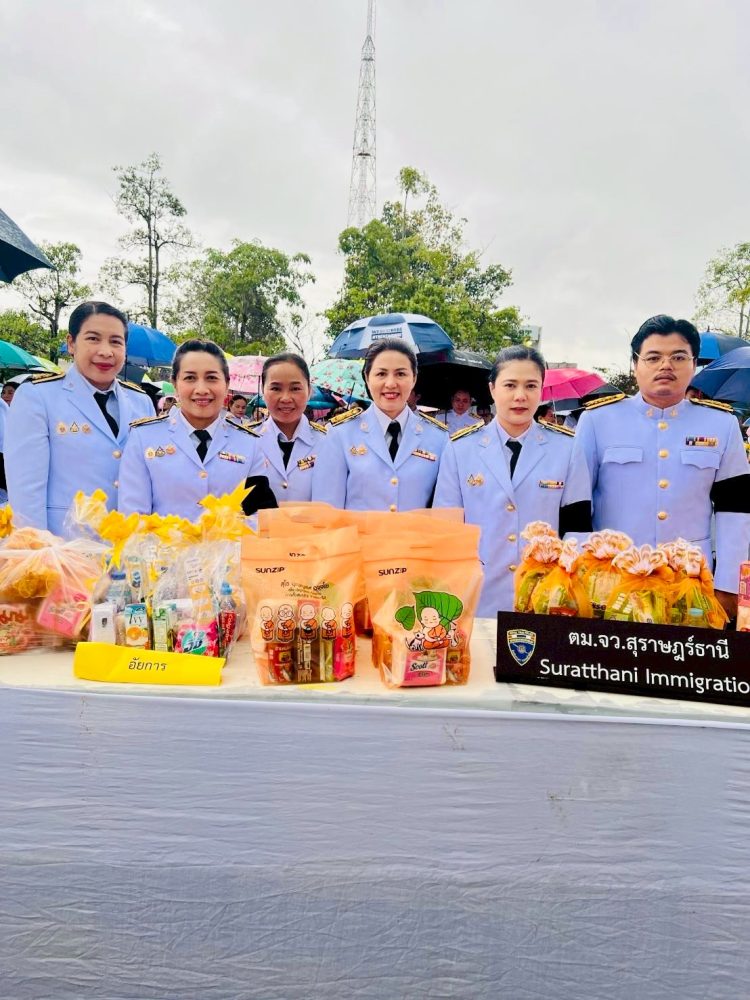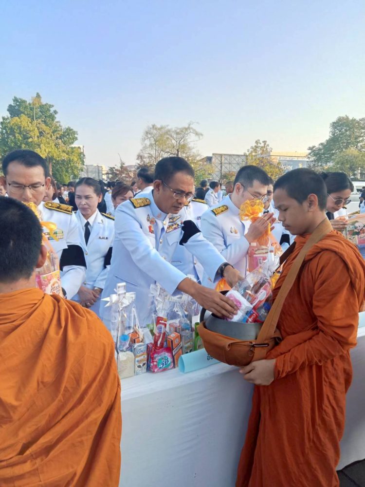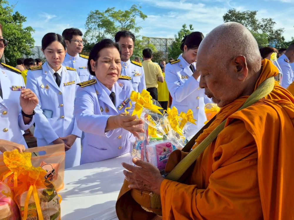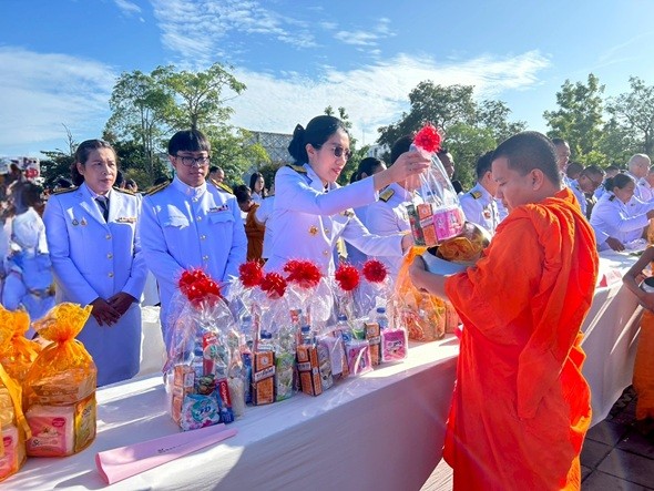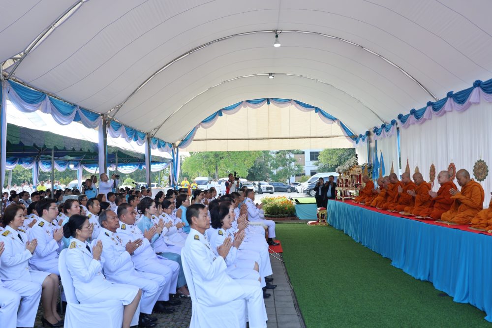 เวลา 07.30 นาฬิกา พิธีเจริญพระพุทธมนต์ และทำบุญตักบาตรถวายพระราชกุศล ณ บริเวณสนามหน้าศาลากลางจังหวัดสุราษฎร์ธานี อำเภอเมืองสุราษฎร์ธานี จังหวัดสุราษฎร์ธานี
