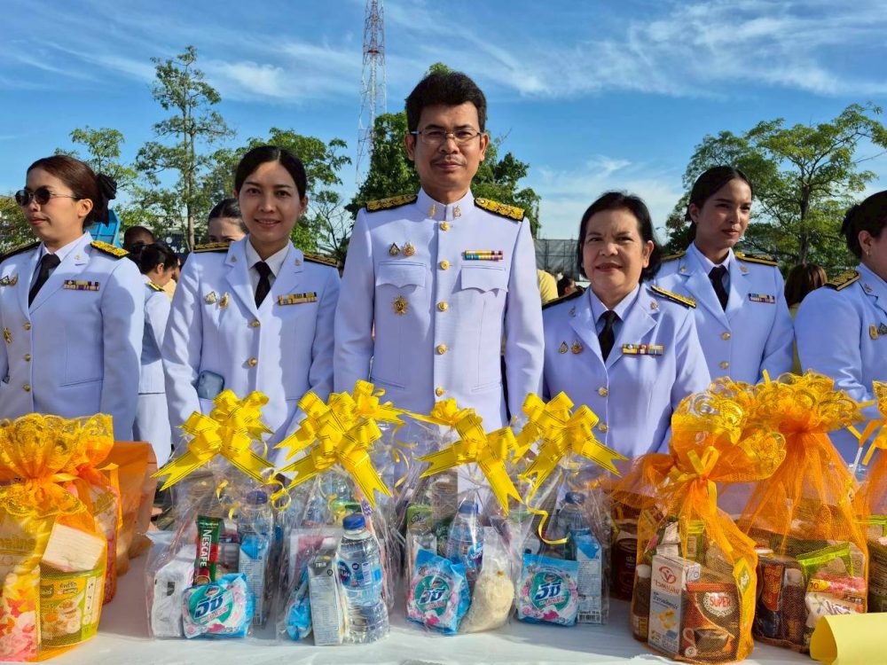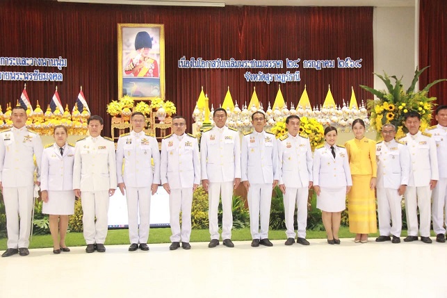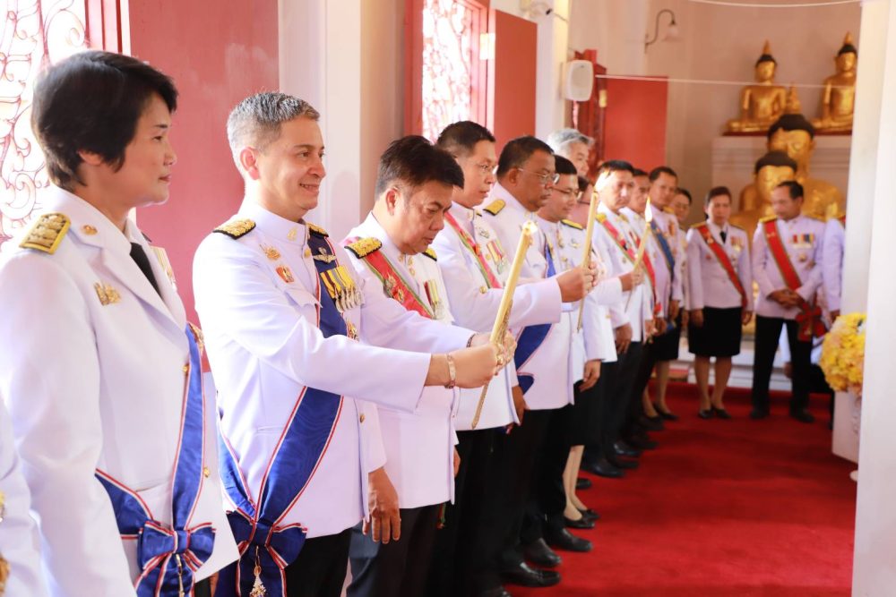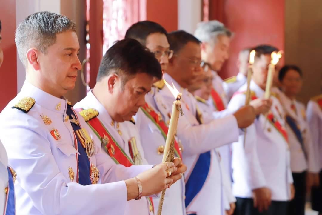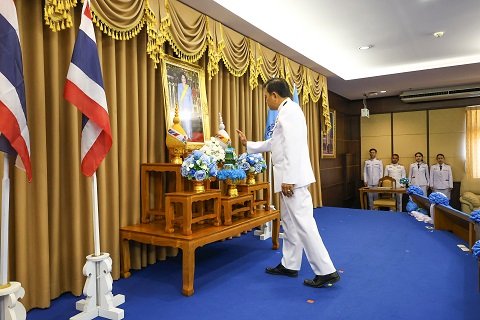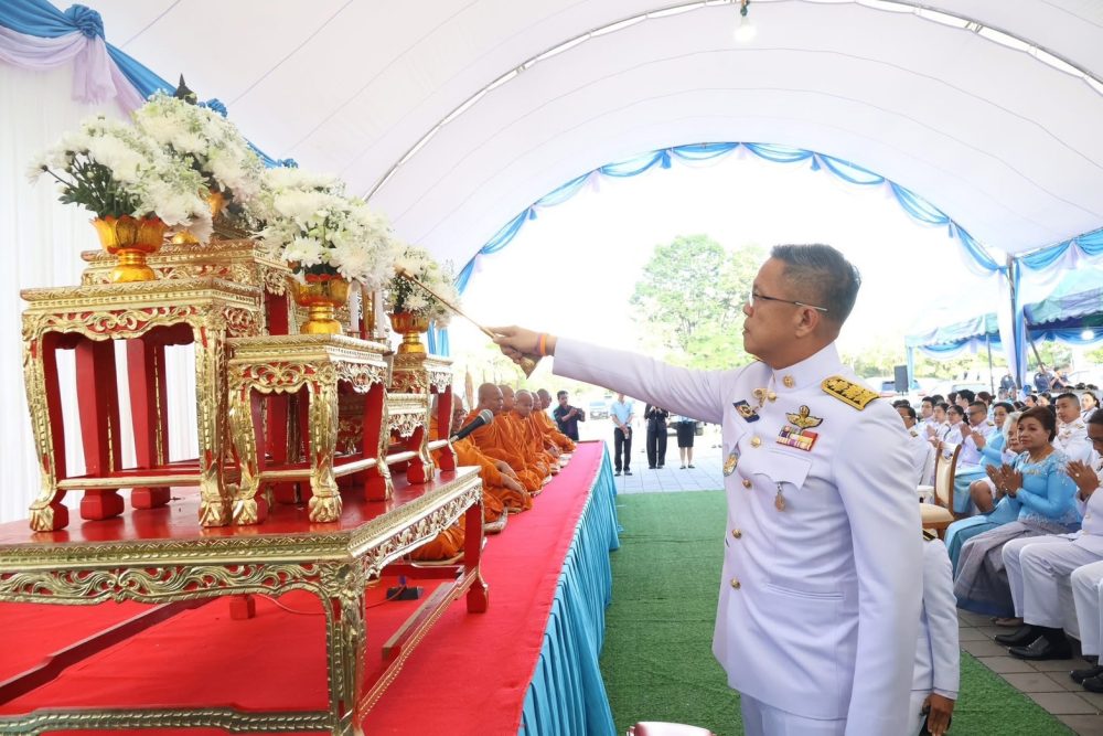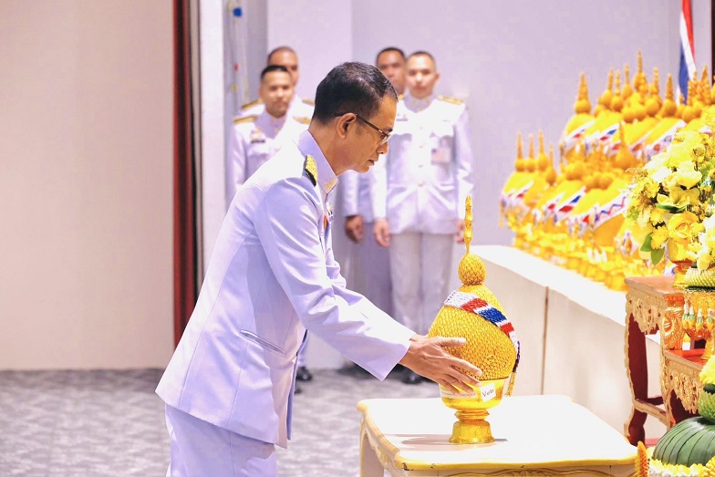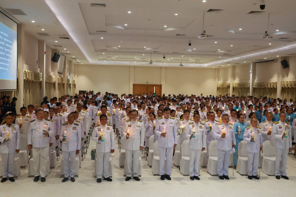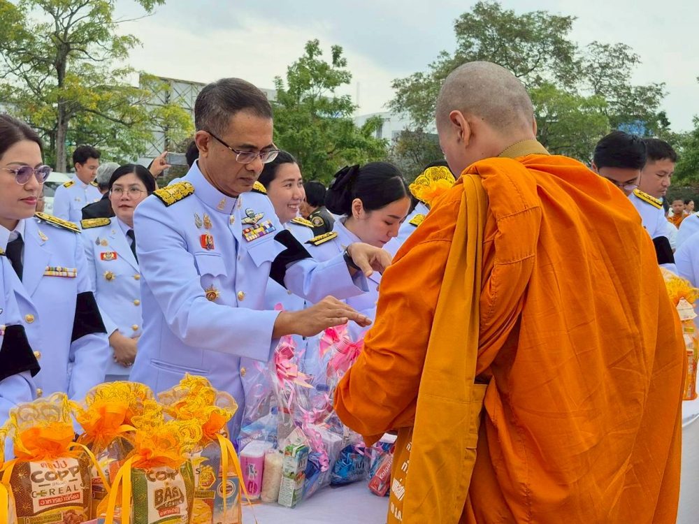 เวลา 07.30 นาฬิกา พิธีเจริญพระพุทธมนต์ และทำบุญตักบาตรถวายพระราชกุศล ณ บริเวณสนามหน้าศาลากลางจังหวัดสุราษฎร์ธานี อำเภอเมืองสุราษฎร์ธานี จังหวัดสุราษฎร์ธานี