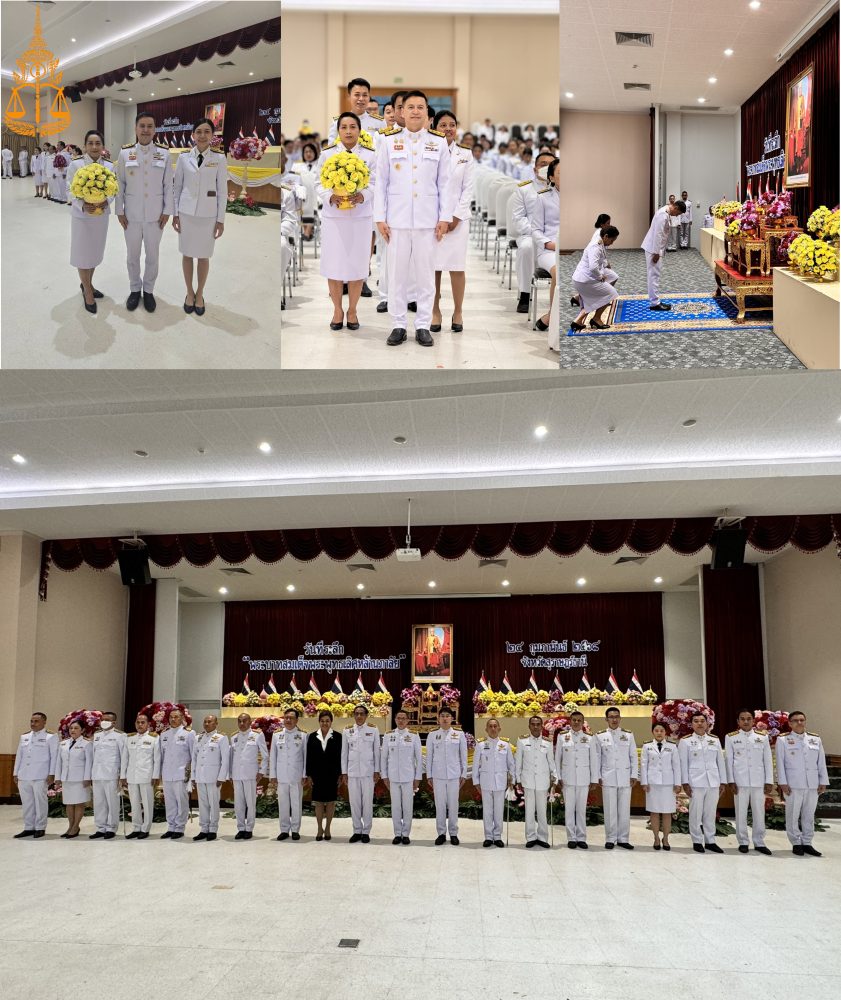 นายธีระยุทธ์ รอดเจริญ อัยการจังหวัดคดีเยาวชนและครอบครัวจังหวัดสุราษฎร์ธานี พร้อมข้าราชการฝ่ายอัยการในสังกัด ร่วมพิธีเจริญพระพุทธมนต์และทำบุญตักบาตรถวายพระราชกุศล เนื่องในวันคล้ายวันพระบรมราชสมภพพระบาทสมเด็จพระบรมชนกาธิเบศ มหาภูมิพลอดุลยเดชมหาราช บรมนาถบพิตร วันชาติ และวันพ่อแห่งชาติ 5 ธันวาคม 2568 ณ บริเวณสนามหน้าศาลากลางจังหวัดสุราษฎร์ธานี และพิธีวางพุ่มดอกไม้ถวายบังคมเบื้องหน้าพระบรมฉายาลักษณ์ พระบาทสมเด็จพระบรมชนกาธิเบศ มหาภูมิพลอดุลยเดชมหาราช บรมนาถบพิตร ณ อาคารศูนย์กลางการประชุมสัมมนาภาคใต้ตอนบน ศาลากลางจังหวัดสุราษฎร์ธานี โดยมีนายจุมพฏ วรรณฉัตรสิริ ผู้ว่าราชการจังหวัดสุราษฎร์ธานี เป็นประธานในพิธี ทั้งนี้เพื่อน้อมรำลึกถึงพระมหากรุณาธิคุณอันหาที่สุดมิได้ที่ พระบาทสมเด็จพระบรมชนกาธิเบศร มหาภูมิพลอดุลยเดชมหาราช บรมนาถบพิตร
