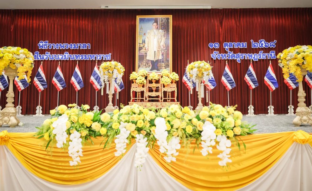 เวลา 17.30 นาฬิกา พิธีถวายเครื่องราชสักการะและวางพานพุ่ม และพิธีจุดเทียนถวายพระพรชัยมงคล ณ อาคารศูนย์กลางการประชุมภาคใต้ตอนบน ศาลากลางจังหวัดสุราษฎร์ธานี อำเภอเมืองสุราษฎร์ธานี จังหวัดสุราษฎร์ธานี