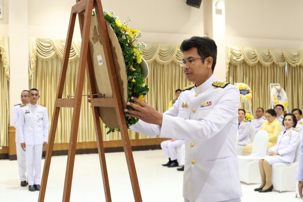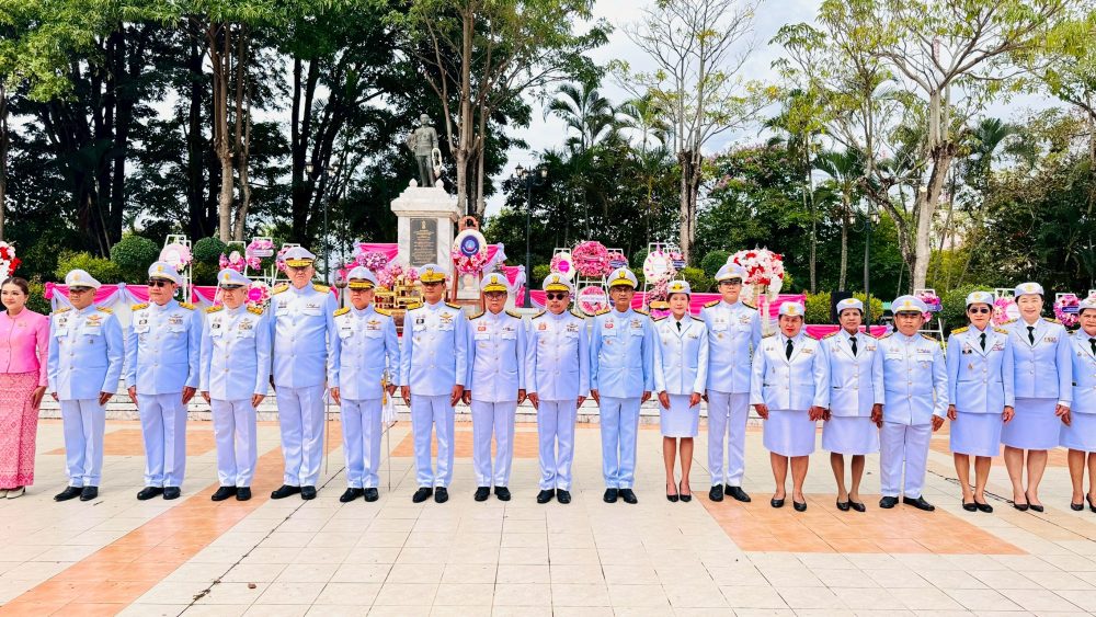 นายธีระยุทธ์ รอดเจริญ อัยการจังหวัดคดีเยาวชนและครอบครัวจังหวัดสุราษฎร์ธานี ข้าราชการฝ่ายอัยการ และบุคลากรฯ ร่วมพิธีวางพวงมาลาน้อมรำลึก เนื่องในวันคล้ายวันสวรรคต พระบาทสมเด็จพระจุลจอมเกล้าเจ้าอยู่หัว ประจำปี 2568 ณ พระบรมราชานุสาวรีย์ พระบาทสมเด็จพระจุลจอมเกล้าเจ้าอยู่หัว บริเวณสนามหน้าศูนย์ราชการจังหวัดสุราษฎร์ธานี เพื่อน้อมรำลึกในพระมหากรุณาธิคุณ และแสดงออกถึงความจงรักภักดี เนื่องในวันคล้ายวันสวรรคต พระบาทสมเด็จพระจุลจอมเกล้าเจ้าอยู่หัว รัชกาลที่ 5