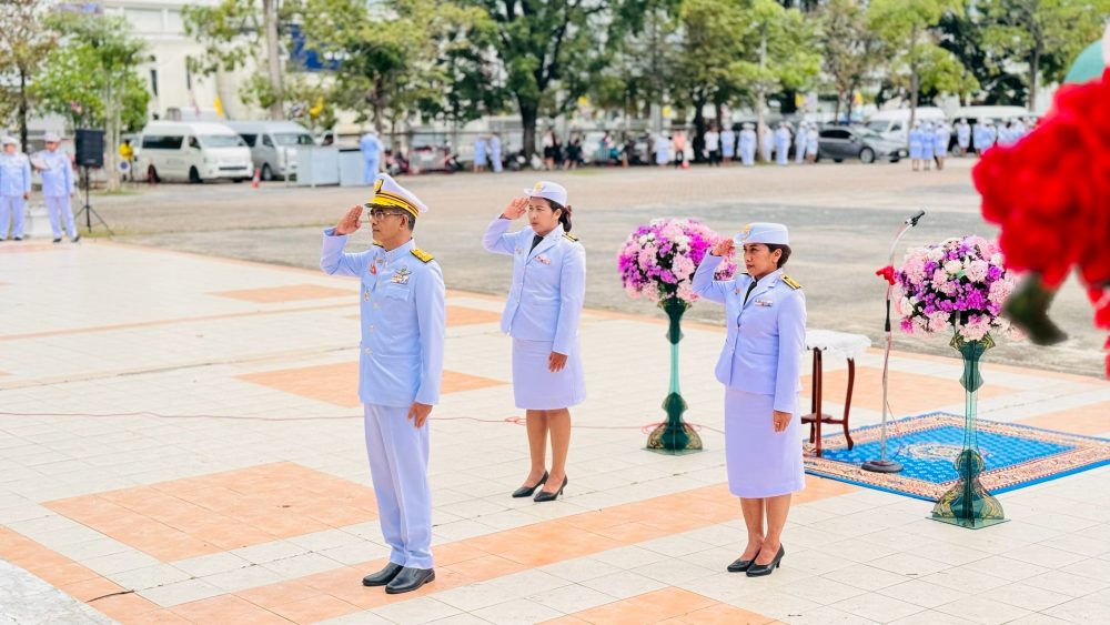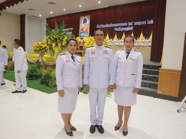 นายสัญญา พงศ์พานิช อัยการจังหวัดคดีเยาวชนและครอบครัวจังหวัดสุราษฎร์ธานี พร้อมด้วยข้าราชการสำนักงานอัยการคดีเยาวชนและครอบครัวจังหวัดสุราษฎร์ธานี เข้าร่วมงานรัฐพิธีวันที่ระลึก “พระบาทสมเด็จพระพุทธเลิศหล้านภาลัย”