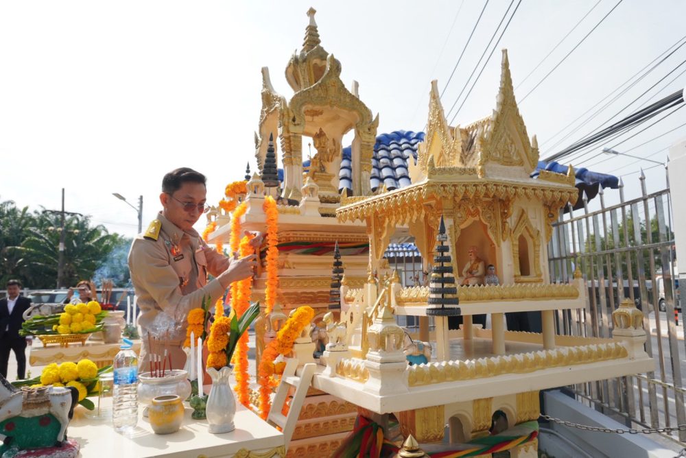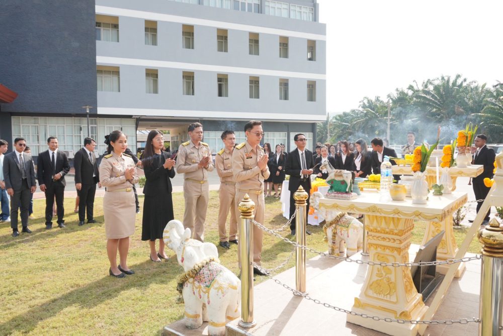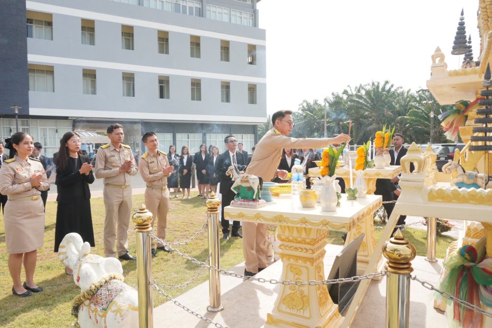 จัดพิธีบวงสรวงตั้งศาลพระพรหมและศาลเจ้าที่ และอัญเชิญองค์พระพรหมและเจ้าที่ประดิษฐานประจำอาคารสำนักงานอัยการจังหวัดเวียงสระ
