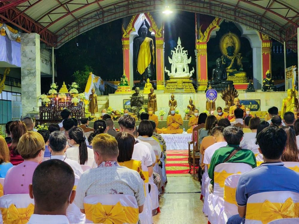 ร่วมกิจกรรมทำบุญตักบาตร สวดมนต์ ฟังเทศน์ ถวายอาหารแด่พระสงฆ์ กิจกรรมแห่ขบวนรถเทียนพรรษา และกิจกรรมสมโภชเทียนพรรษา และเวียนเทียนรอบประชาชน ณ วัดพุทธาธิวาส อำเภอเบตง จังหวัดยะลา