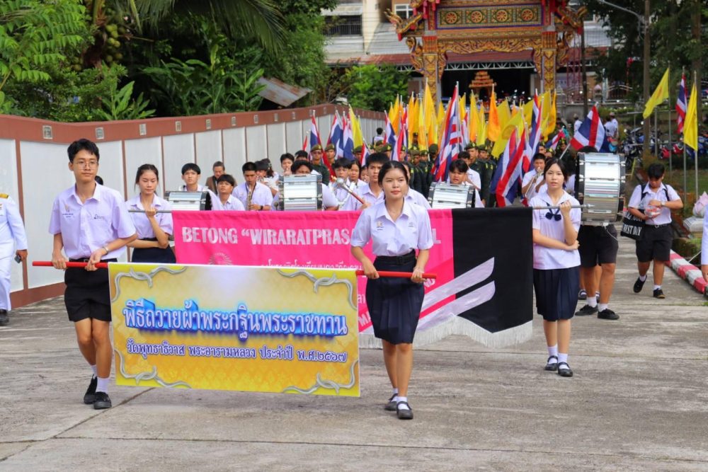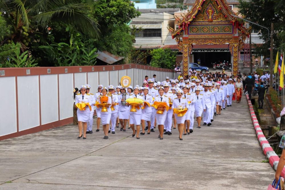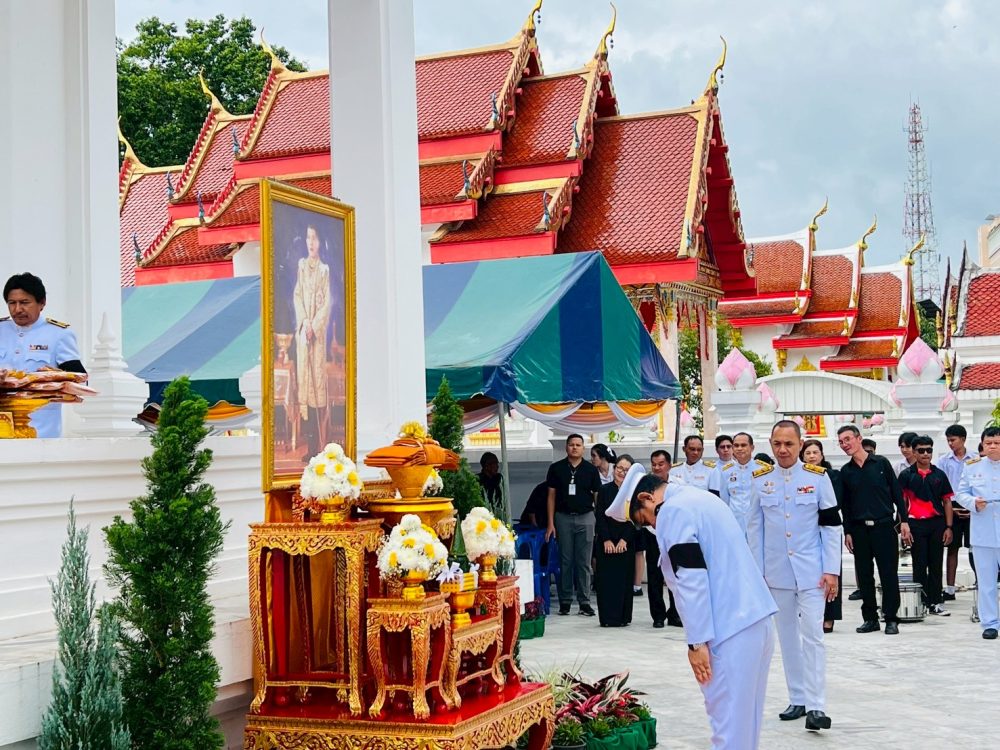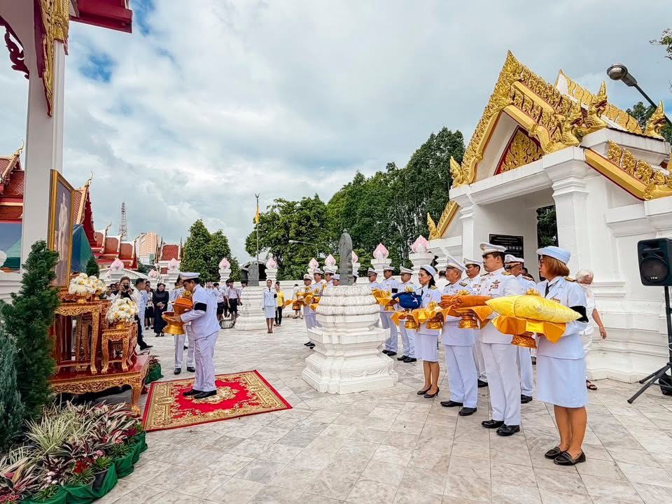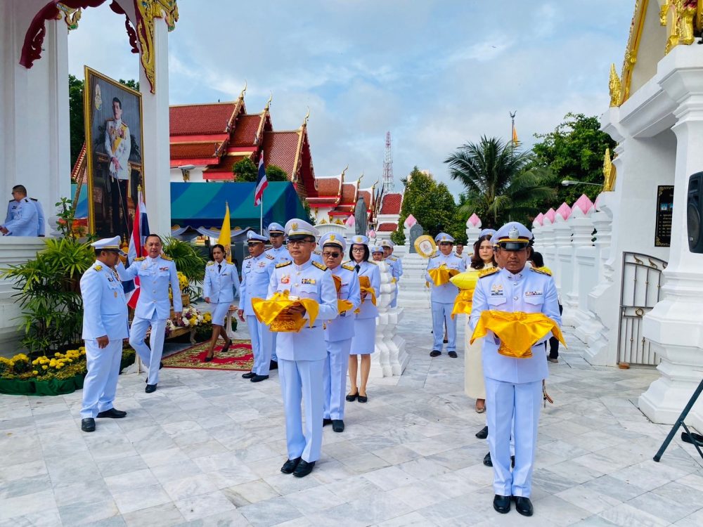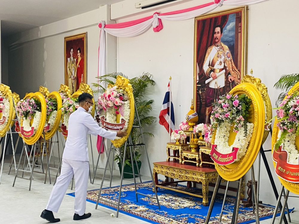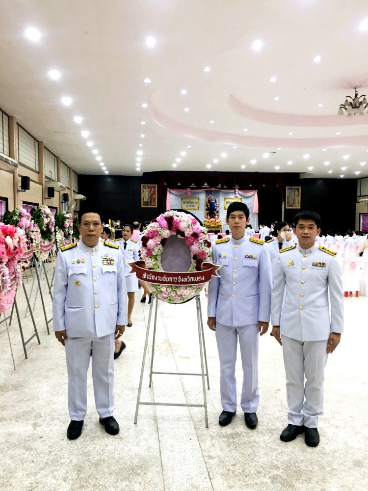 ต่อมาเมื่อเวลา ๐๘.๐๐ น ได้เข้าร่วมพิธีวางพานพุ่มดอกไม้ เพื่อแสดงถึงความจงรักภักดี และน้อมรำลึกในพระมหากรุณาธิคุณ