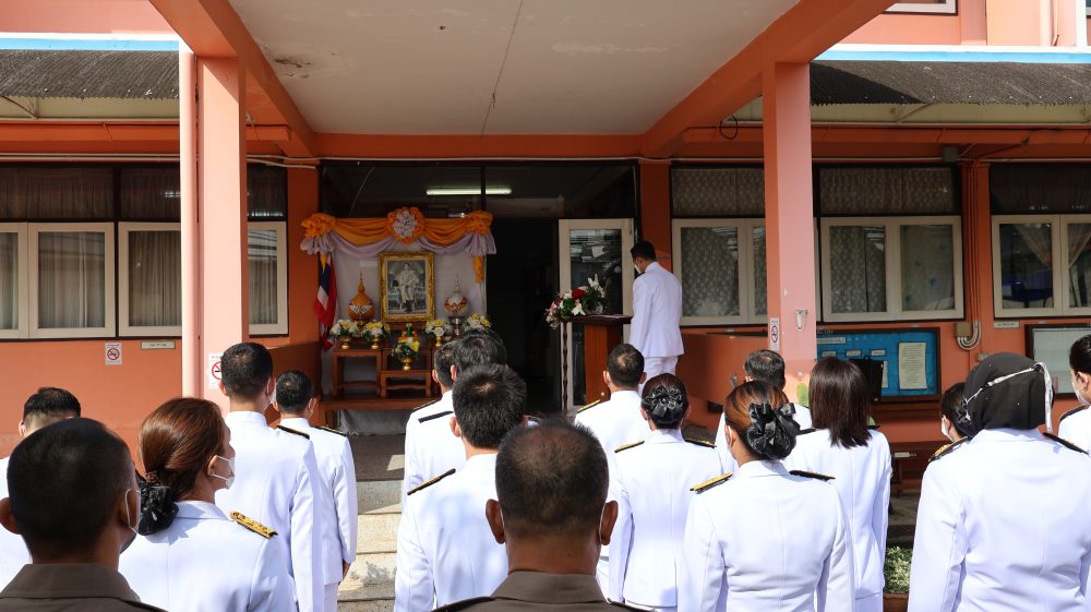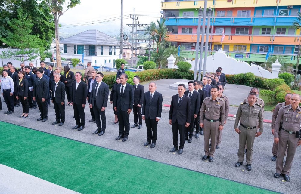 และต่อมาเมื่อเวลา ๑๗.๐๐ น. นายรณภพ สุรัตนสิงห์ อัยการจังหวัดประจำสำนักงานอัยการจังหวัดเบตง และข้าราชการธุรการเข้าร่วมกิจกรรม ” เข้าร่วมพิธีถวายเครื่องราชสักการะ และวางพานพุ่ม และพิธีจุดเทียนถวายพระพรชัยมงคล