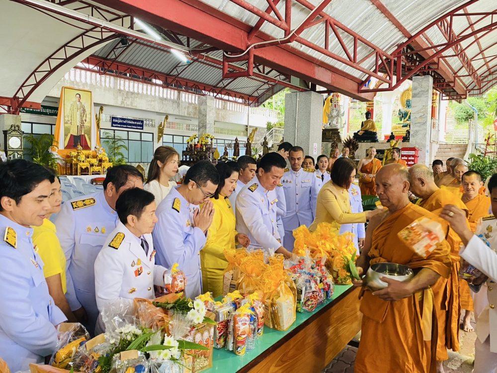 พร้อมด้วยตัวแทนข้าราชการธุรการ สำนักงานอัยการจังหวัดเบตง เข้าร่วมกิจกรรม “ เนื่องในวันนวมินทรมหาราช ” เข้าร่วมสวดพระพุทธมนต์ และทำบุญตักบาตรถวายพระราชกุศล ณ วัดพุทธาธิวาส อำเภอเบตง จังหวัดยะลา
