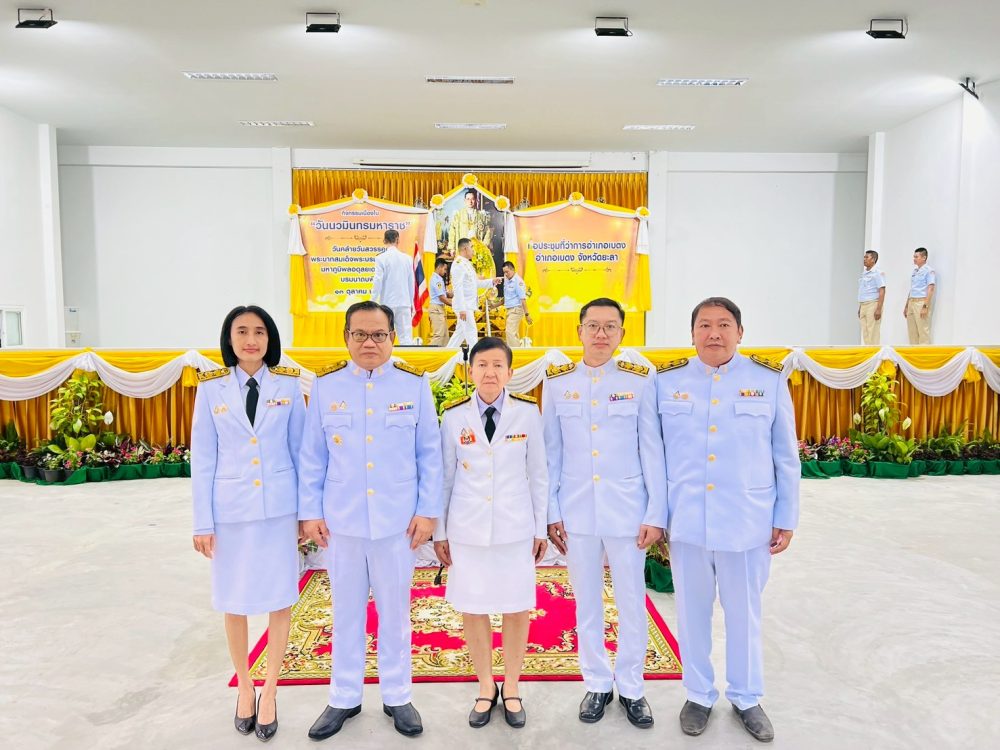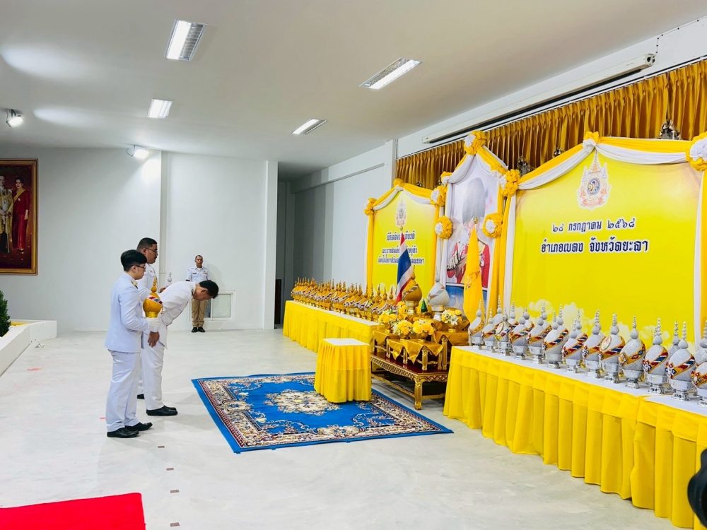 เวลา ๐๘.๐๐ น. เข้าร่วมพิธีวางพวงมาลาและถวายราชสดุดี (ต่อเนื่องจากพิธีทำบุญตักบาตร) เพื่อเป็นการน้อมรำลึก ถึงพระมหากรุณาธิคุณในพระบาทสมเด็จพระบรมชนกาธิเบศรมหาภูมิพลอดุลยเดชมหาราช บรมนาถบพิตร ณ หอประชุมอำเภอเบตง