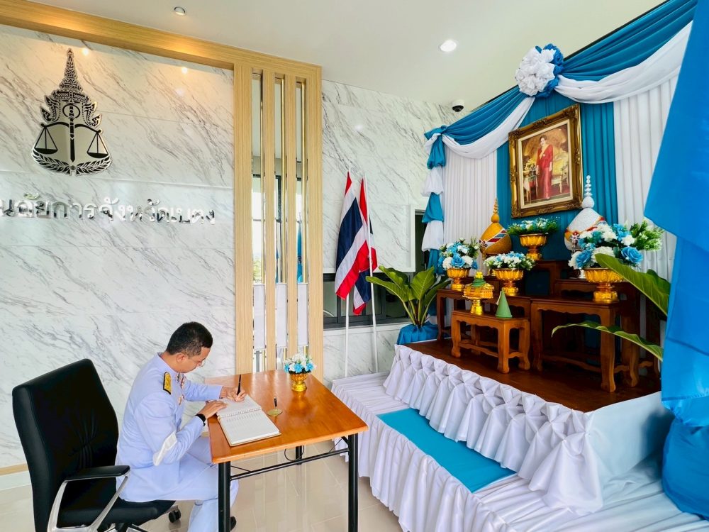 วันพุธที่ ๒๙ ตุลาคม ๒๕๖๘ เวลา ๑๐.๐๐ น. นายประทักษ์พงศ์ ลิ้มสกุล นำคณะข้าราชการฝ่ายอัยการและบุคลากรในสังกัดสำนักงานอัยการจังหวัด และสำนักงานอัยการคุ้มครองสิทธิฯ (สาขาเบตง) ลงนามถวายความอาลัยสมเด็จพระนางเจ้าสิริกิติ์ พระบรมราชินีนาถ พระบรมราชชนนีพันปีหลวง เพื่อแสดงความอาลัยและน้อมสำนึกในพระมหากรุณาธิคุณอย่างหาที่สุดมิได้ ณ บริเวณลานอาคาร สำนักงานอัยการจังหวัดเบตง (หลังใหม่)