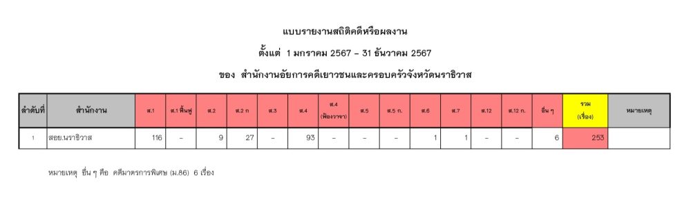 สถิติสำนักงานอัยการคดีเยาวชนและครอบครัวจังหวัดนราธิวาส