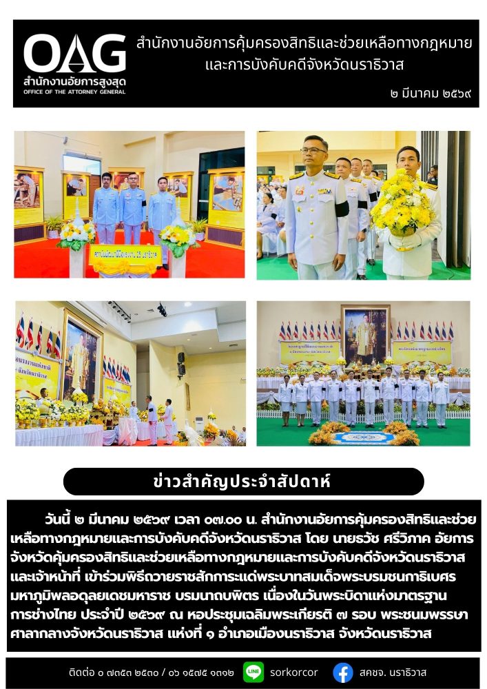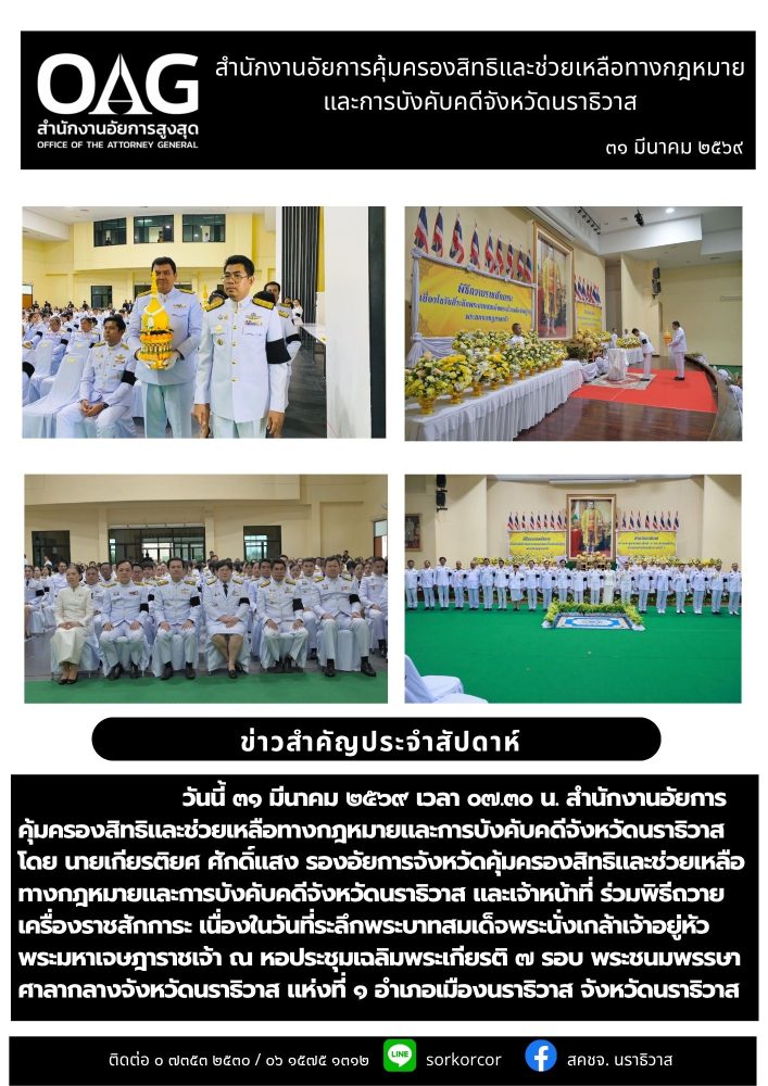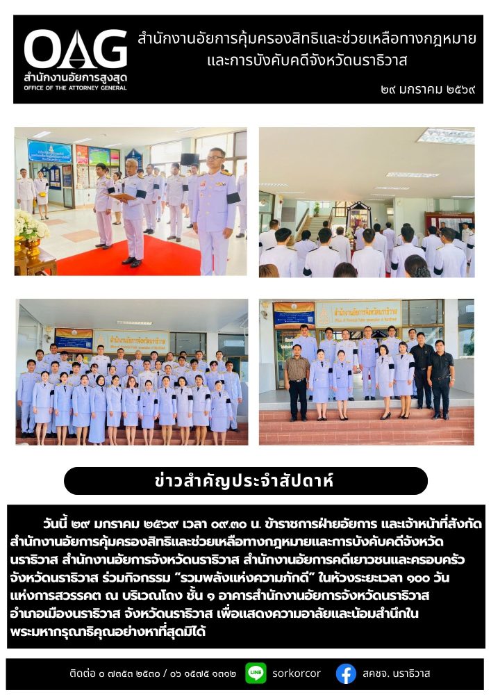 อาคารสำนักงานอัยการจังหวัดนราธิวาส ชั้น 1 ตำบลโคกเคียน อำเภอเมืองนราธิวาส จังหวัดนราธิวาส 96000