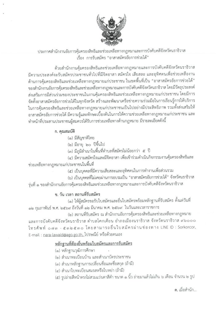 ประกาศ การรับสมัคร ” อาสาสมัครอัยการช่วยได้ “