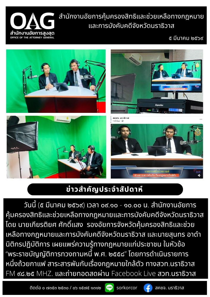 5. การเผยแพร่ความรู้ทางกฎหมายให้แก่ประชาชนกลุ่มต่างๆ