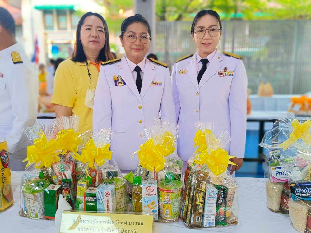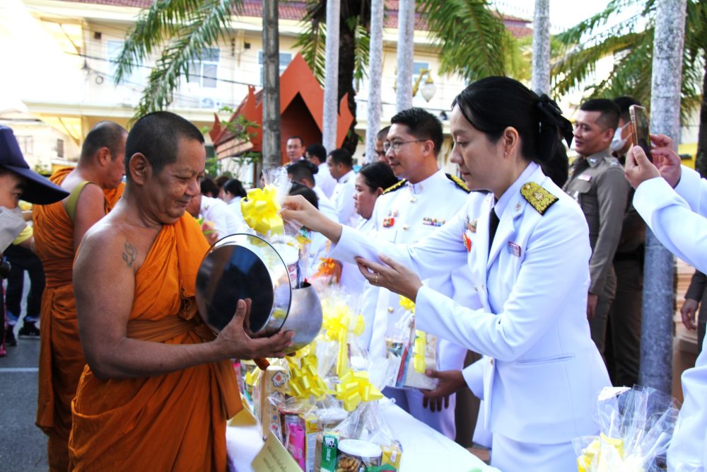 ข้าราชการอัยการ พร้อมบุคลากร สำนักงานอัยการคดีเยาวชนและครอบครัวจังหวัดปัตตานี ร่วมพิธีตักบาตร และเจริญพระพุทธมนต์ถวายพระกุศล เฉลิมพระเกียรติสมเด็จพระนางเจ้าสุทิดา พัชรสุธาพิมลลักษณ พระบรมราชินี เนื่องในโอกาสวันคล้ายวันประสูติ ๓ มิถุนายน ๒๕๖๗ ณ วัดตานีนรสโมสร พระอารามหลวง อำเภอเมืองปัตตานี จังหวัดปัตตานี พิธีถวายเครื่องราชสักการะวางพานพุ่ม จุดเทียนชัย ณ ลานหน้าเสาธง อำเภอเมือง จังหวัดปัตตานี