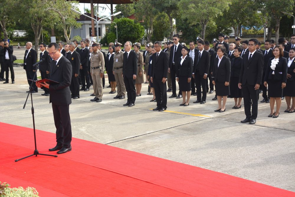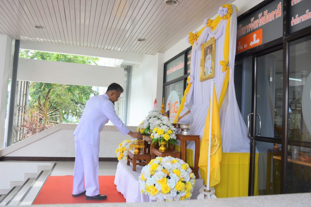 วันศุกร์ที่ ๑๓ ตุลาคม ๒๕๖๖ สำนักงานอัยการคดีเยาวชนและครอบครัวจังหวัดปัตตานี ร่วมพิธีสวดพระพุทธมนต์และทำบุญตักบาตรถวายพระราชกุศล และร่วมวางพวงมาลา เนื่องในวันนวมินทรมหาราช ประจำปี พุทธศักราช ๒๕๖๖ ณ ลานศิลปวัฒนธรรม หน้าศาลากลางจังหวัดปัตตานี อำเภอเมืองปัตตานี จังหวัดปัตตานี