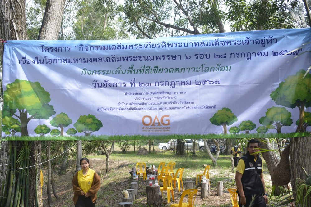 วันที่ ๒๓ กรกฎาคม ๒๕๖๗ สำนักงานอัยการคดีเยาวชนและครอบครัวจังหวัดปัตตานี ร่วมกิจกรรมเฉลิมพระเกียรติพระบาทสมเด็จพระเจ้าอยู่หัว เนื่องในโอกาสมหามงคลเฉลิมพระชนมพรรษา ๖ รอบ ๒๘ กรกฎาคม ๒๕๖๗ เพิ่มพื้นที่สีเขียวลดภาวะโลกร้อนและร่วมปลูกต้นไม้ ณ ฟาร์มตัวอย่างบ้านสีปาย ต.ตาลีอายร์ อ.ยะหริ่ง จ.ปัตตานี