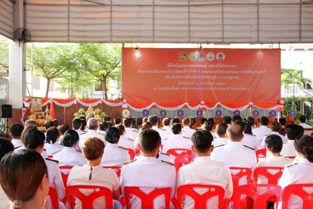 วันที่ ๑๙ กรกฎาคม ๒๕๖๗ สำนักงานอัยการคดีเยาวชนและครอบครัวจังหวัดปัตตานี ร่วมพิธีเจริญพระพุทธมนต์ และพิธีทำบุญตักบาตร เฉลิมพระเกียรติสมเด็จพระเจ้าน้องนางเธอเจ้าฟ้าจุฬาภรณ์วลัยลักษณ์อัครราชกุมารี กรมพระศรีสวางควัฒน วรขัติยราชนารี เนื่องในโอกาสวันคล้ายวันประสูติ ๔ กรกฎาคม ณ วัดตานีนรสโมสรพระอารามหลวง อำเภอเมือง จังหวัดปัตตานี