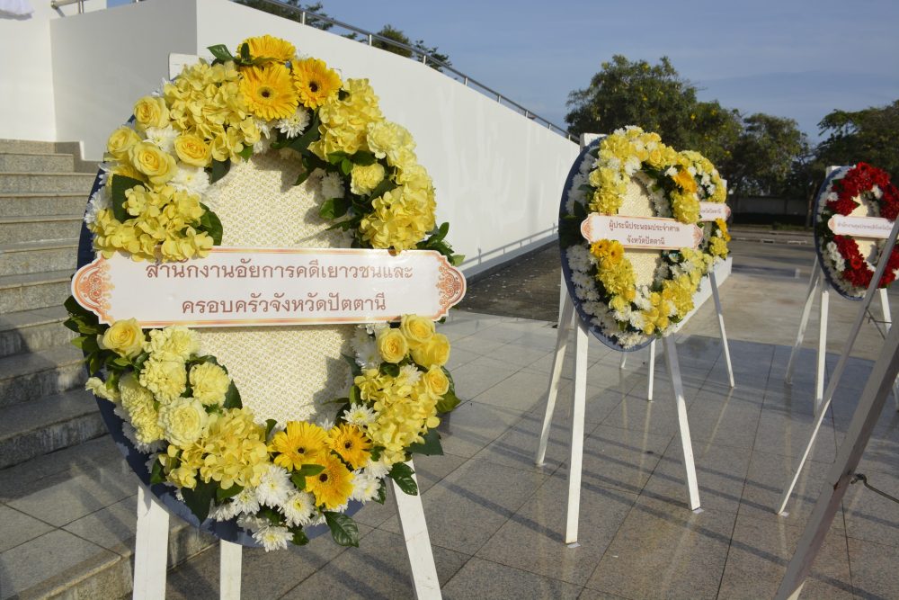 ข้าราชการอัยการ พร้อมบุคลากร สำนักงานอัยการคดีเยาวชนและครอบครัวจังหวัดปัตตานี ร่วมวางพวงมาลาในพิธีวันคล้ายวันสิ้นพระชนม์ พลเรือเอกพระเจ้าบรมวงศ์เธอ กรมหลวงชุมพรเขตอุดมศักดิ์ ๑๙ พฤษภาคม ๒๕๖๗ ณ บริเวณสวนเจ้าทะเล อำเภอเมือง จังหวัดปัตตานี