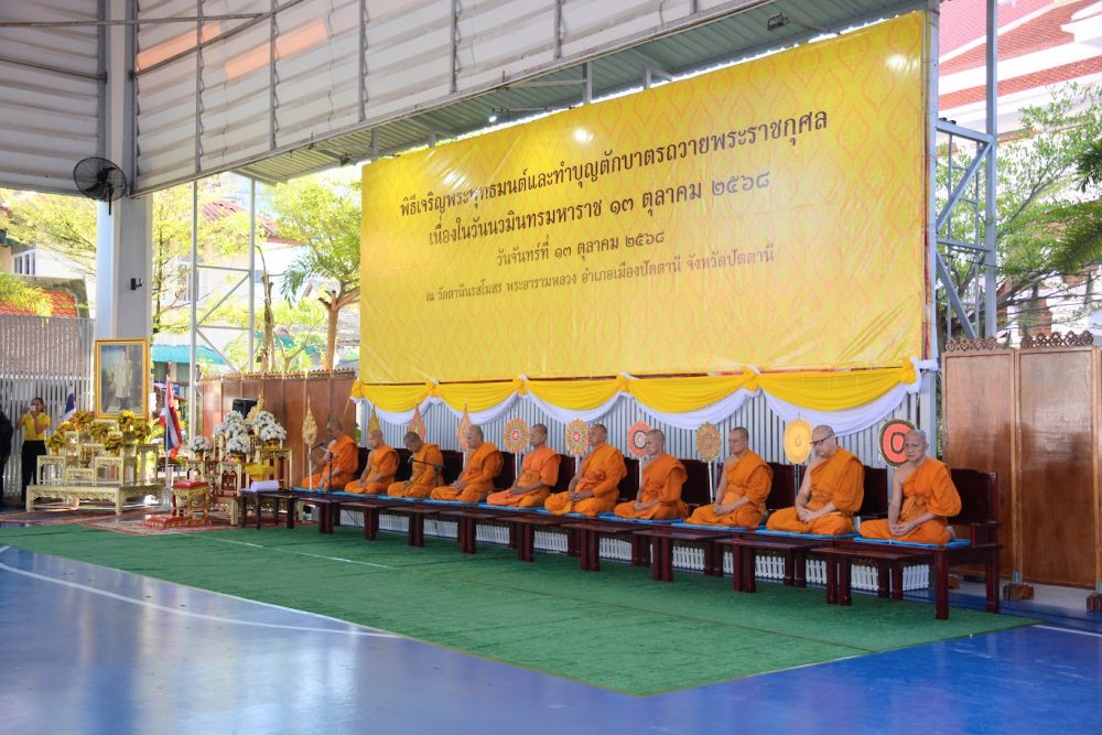 วันที่ ๑๓ ตุลาคม ๒๕๖๗ สำนักงานอัยการคดีเยาวชนและครอบครัวจังหวัดปัตตานี ร่วมพิธีสวดพระพุทธมนต์ ทำบุญตักบาตรถวายพระราชกุศล ณ วัดตานีนรสโมสร พระอารามหลวง และพิธีวางพวงมาลา เนื่องในวันนวมินทรมหาราช เพื่อแสดงออกถึงความจงรักภักดีและสำนึกในพระมหากรุณาธิคุณของพระบาทสมเด็จพระบรมชนกาธิเบศร มหาภูมิพลอดุลยเดชมหาราช บรมนาถบพิตร ณ หอประชุมองค์การบริหารส่วนจังหวัดปัตตานี อำเภอเมือง จังหวัดปัตตานี