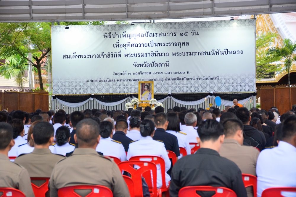 วันที่ ๗ พฤศจิกายน ๒๕๖๘ ข้าราชการฝ่ายอัยการที่ปฏิบัติงานในพื้นที่จังหวัดปัตตานี ประกอบด้วยสำนักงานอัยการคดีเยาวชนและครอบครัวจังหวัดปัตตานี สำนักงานอัยการพิเศษฝ่ายคดีอาญา๔ ภาค ๙ สำนักงานอัยการจังหวัดปัตตานี และสำนักงานอัยการคุ้มครองสิทธิและช่วยเหลือทางกฎหมายและการบังคับคดีจังหวัดปัตตานี ร่วมพิธีสวดพระอภิธรรมและพิธีบำเพ็ญกุศลปัณรสมวาร ๑๕ วัน เพื่อถวายเป็นพระราชกุศลสมเด็จพระนางเจ้าสิริกิติ์ พระบรมราชนีนาถ พระบรมราชชนนีพันปีหลวง ณ วัดตานีนรสโมสร พระอารามหลวง ตำบลอาเนาะรู อำเภอเมืองปัตตานี จังหวัดปัตตานี