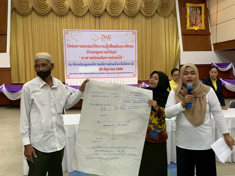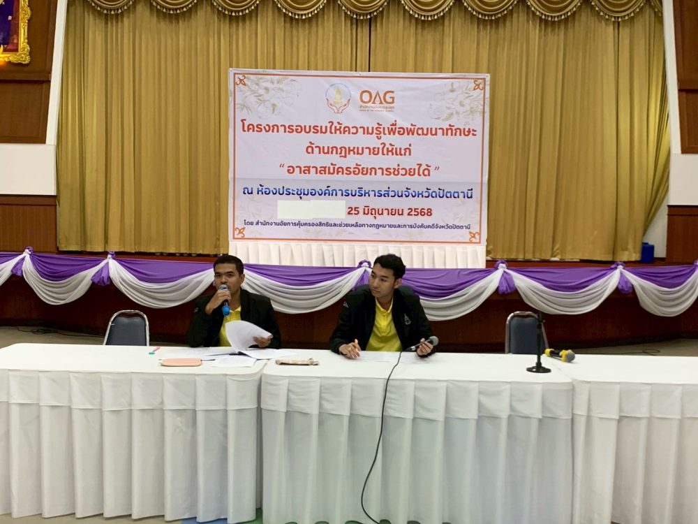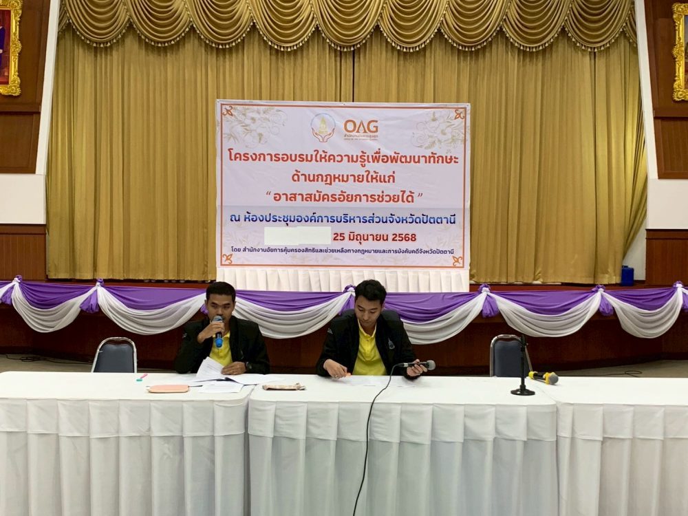 (๑) รับผิดชอบการดำเนินการเกี่ยวกับการคุ้มครองสิทธิมนุษยชนการคุ้มครองสิทธิและเสรีภาพและผลประประโยชน์ของประชาชน การให้ความช่วยเหลือทางกฎหมาย การเผยแพร่ความรู้ด้านสิทธิมนุษยชนและความรู้ทางกฎหมายแก่ประชาชนภายในเขตท้องที่จังหวัดปัตตานี เช่น ให้คำปรึกษาทางกฎหมายและกรณีได้รับความเดือดร้อนไม่ได้รับความเป็นธรรมทุกกรณี เป็นต้น