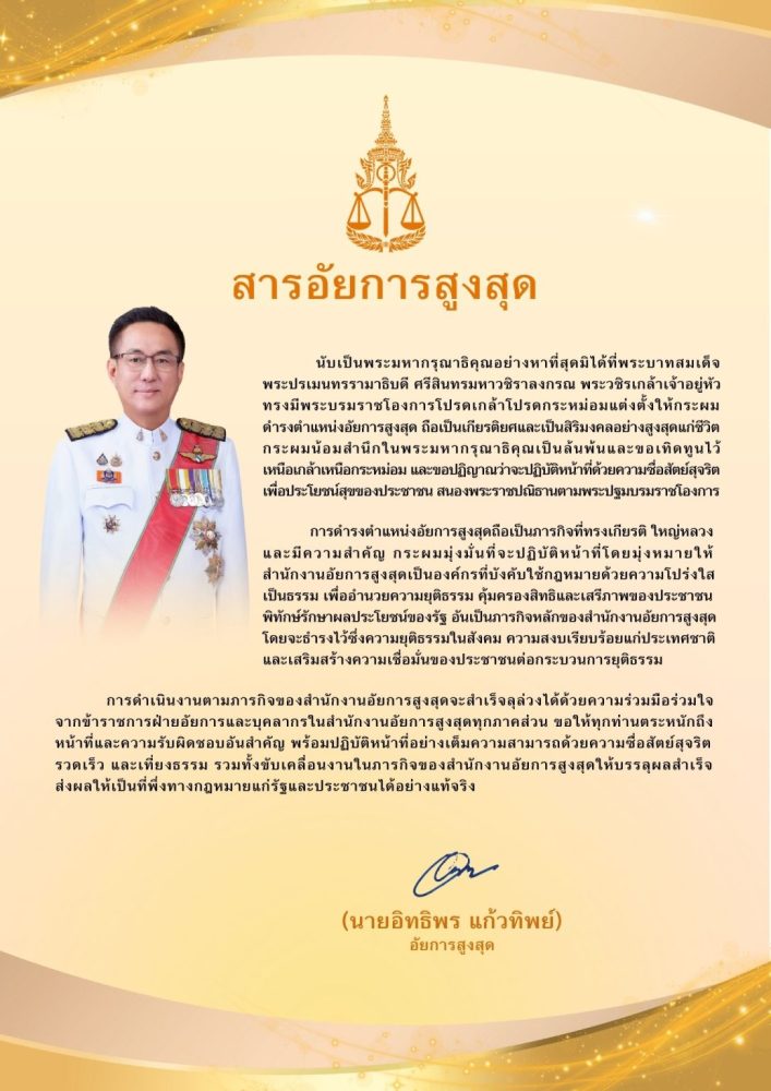 “เป็นองค์กรแห่งความยุติธรรมของสังคมเพื่อความมั่นคงของชาติและความผาสุกของประชาชน”