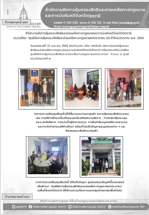 (๓) รับผิดชอบการดำเนินการเกี่ยวกับการคุ้มครองผู้บริโภคด้านอรรถคดี การให้ความช่วยเหลือทางกฎหมาย การเผยแพร่ความรู้ทางกฎหมายเกี่ยวกับการคุ้มครองผู้บริโภคแก่ประชาชนภายในเขตท้องที่จังหวัดปัตตานี