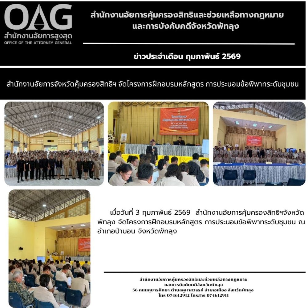เมื่อวันที่ 3 มิถุนายน 2567 สำนักงานอัยการคุ้มครองสิทธิและช่วยเหลือทางกฎหมายและการบังคับคดีจังหวัดพัทลุง